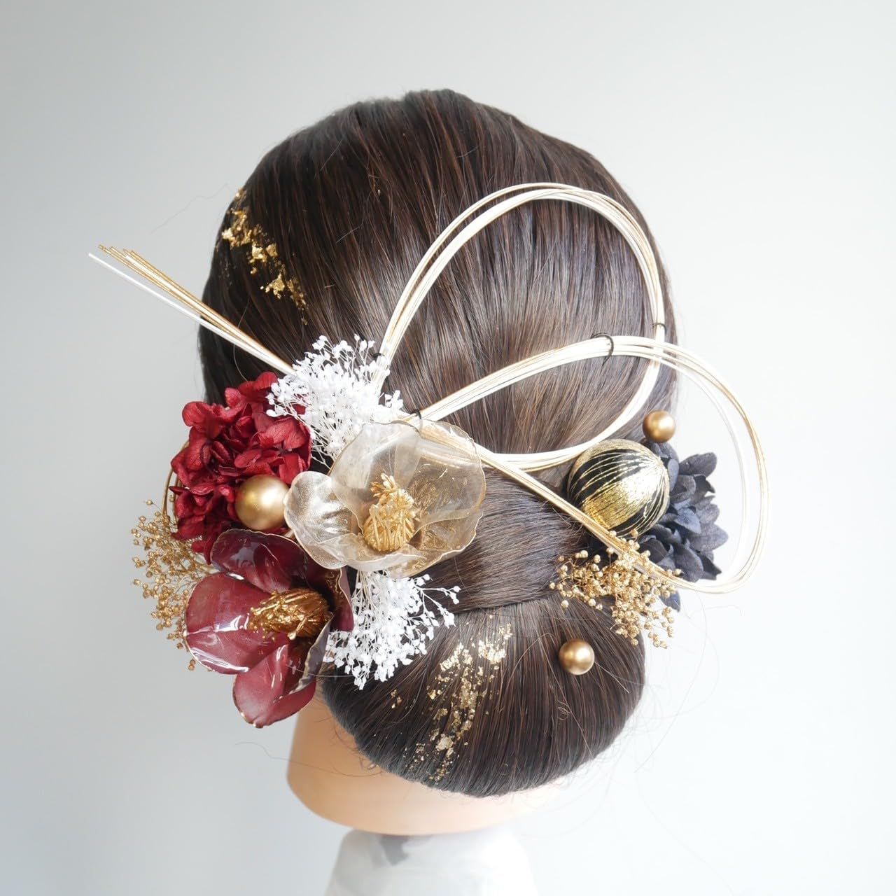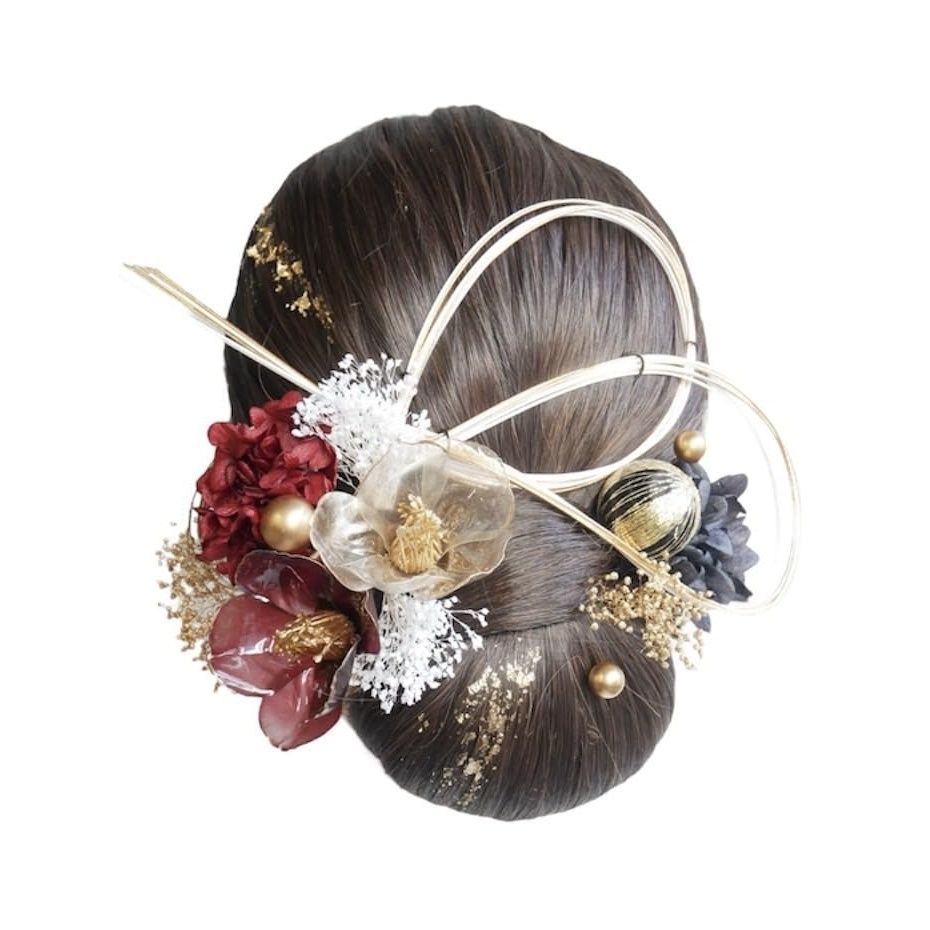 [Lomeri ロメリ] タイトヘア 髪飾り おかみさん ロメリ ドライフラワーの髪飾り 成人式 卒業式 結婚式 袴 G13 (赤黒)