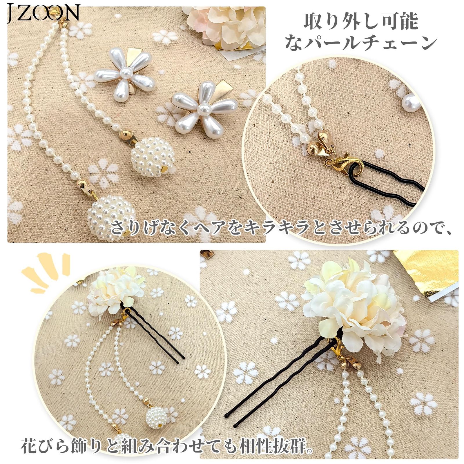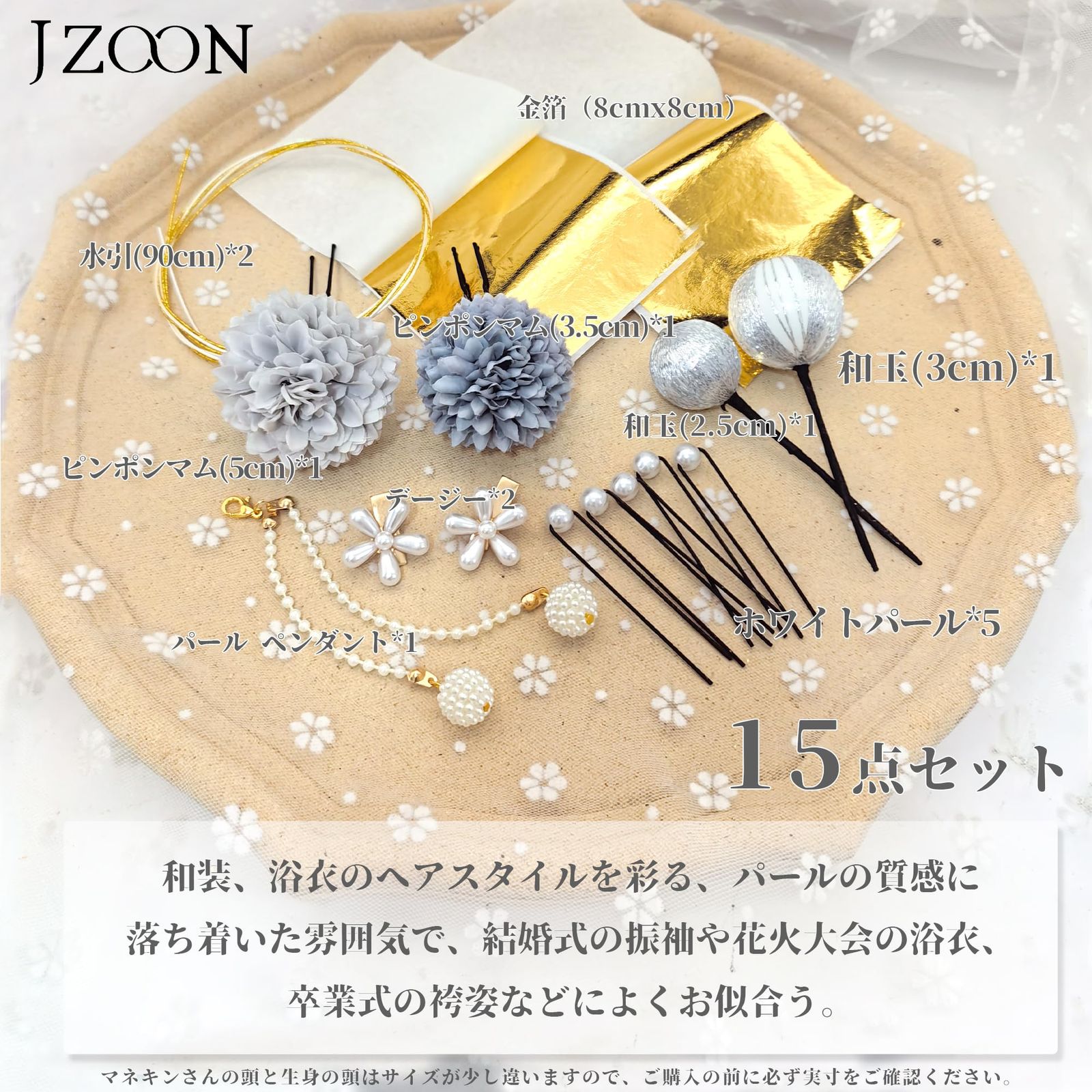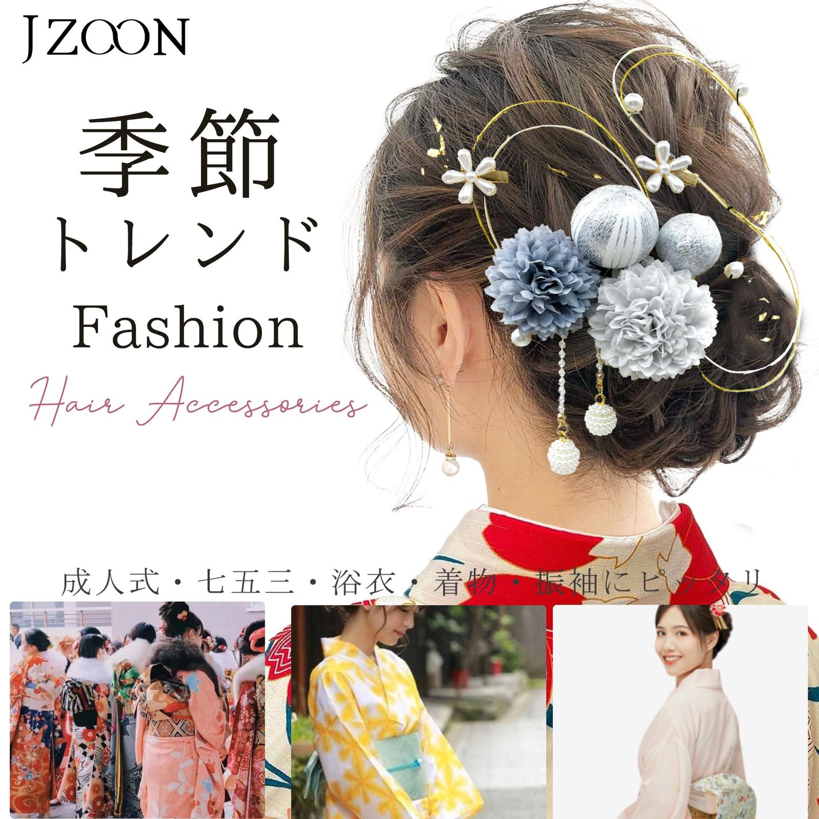【JZOON】浴衣 髪飾り 15点セット 成人式 卒業式 振袖 和装 着物 袴 ドライフラワー 金箔 和玉 水引き パール 全9色 灰 F1107