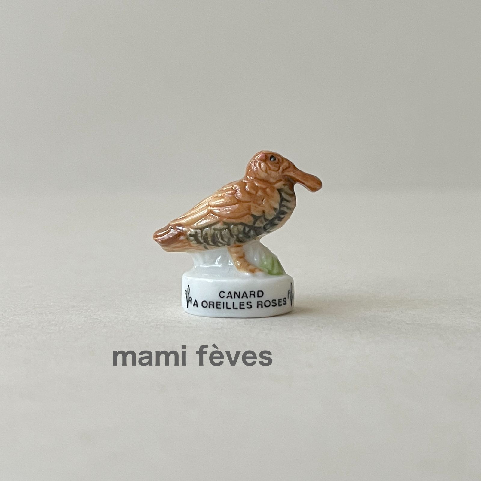 フェーヴ ピンク耳のカモ 鳥 フランス フェーブ ミニチュア陶器