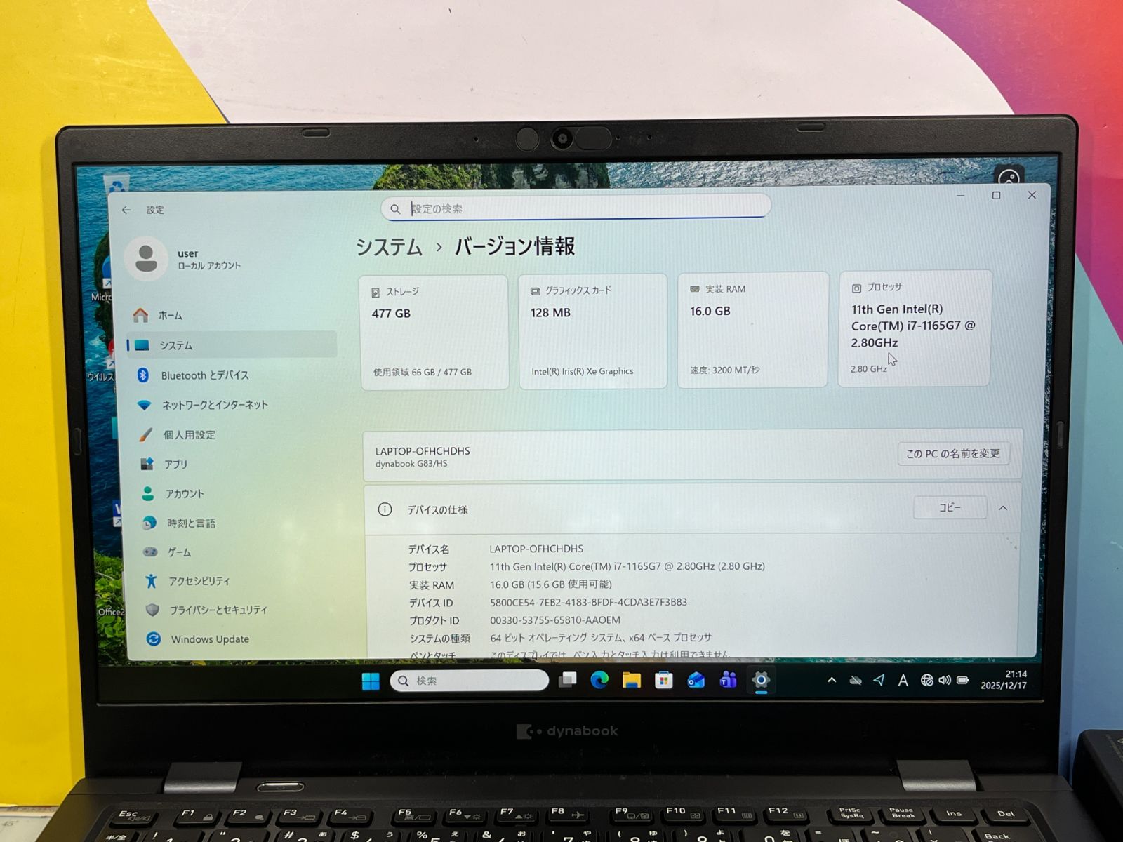 ❄美品東芝dynabook G83/HS i7+16GB+512GB即日発送❄JC1152