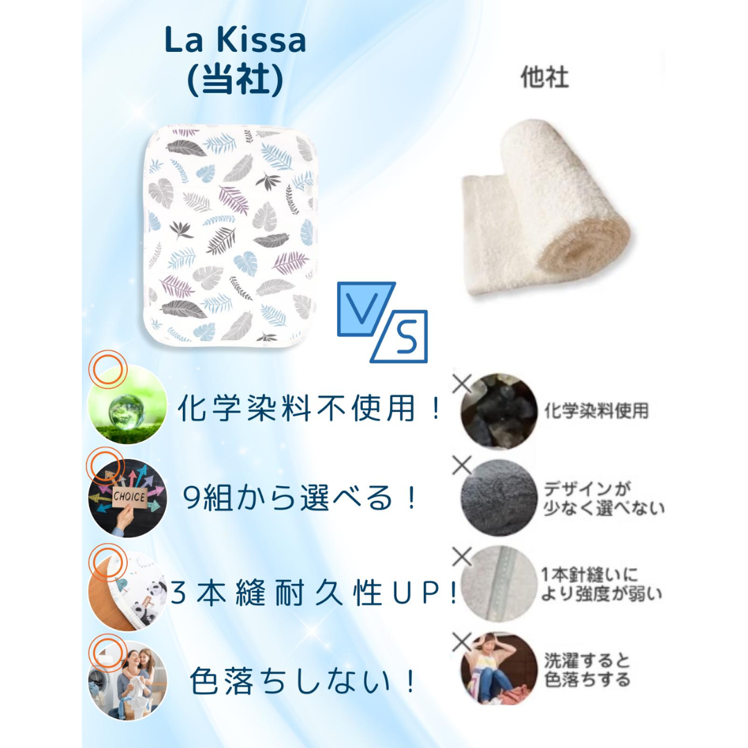 表面は赤ちゃんのお肌にもやさしく、防水にも優れている綿100%。表面はさらっとしているので拭き取りが簡単に出来ます。パイル地ではないので、引っかかって糸が飛び出てしまう事もありません。