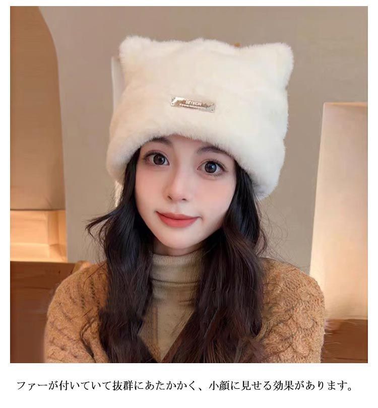 レディース ねこみみ キャップ ニットキャップ カジュアル ファー 韓国 ニット帽 暖かい 猫耳 ねこ耳 帽子 ネコ 秋冬 防寒 かわいい 人気 女性 プレゼント エコファー 大人女子 ファー帽子 ふ#itaiya5980