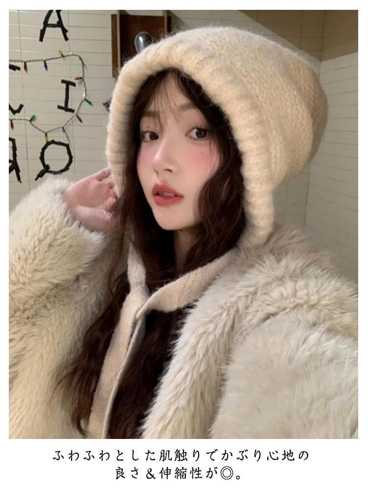 ほどよいボリュームで小顔みせ!あざと可愛いもこもこのフード型帽子です。