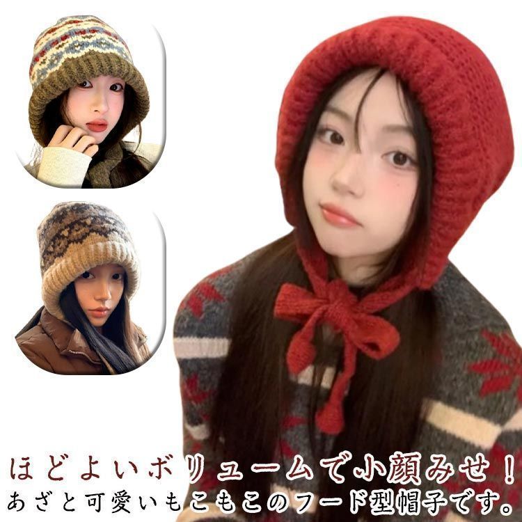 バラクラバ ニット帽 帽子 レディース 帽子 ぼうし 耳あて ふわふわ リブ編み リボン ネックウォーマー マフラー ファーハット フード 防寒 暖かい 韓国風 寒さ対策 暖か 大人可愛い 冬物 被り#nin8285