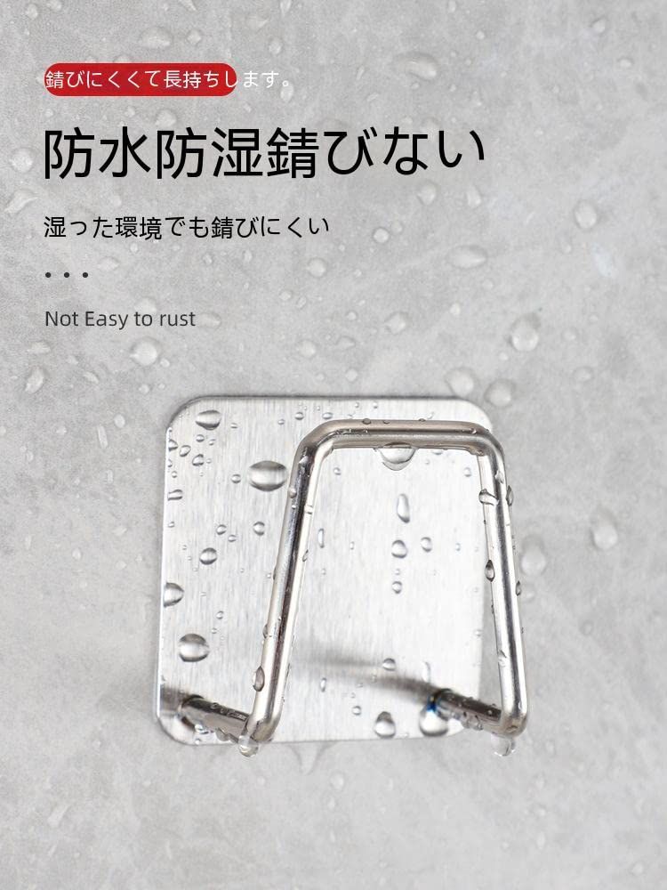 【粘着固定】強力粘着フックを採用して壁に粘着固定、特殊粘着剤で水濡れてもずれ落ちにくいです。穴開けが不要なので取り付け面をキズつけることもありません。