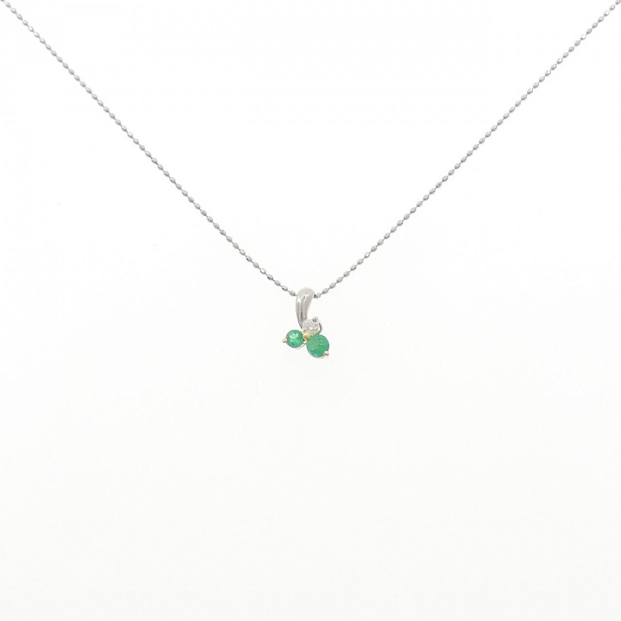 K18/PT900/PT850 エメラルド ネックレス 0.13CT