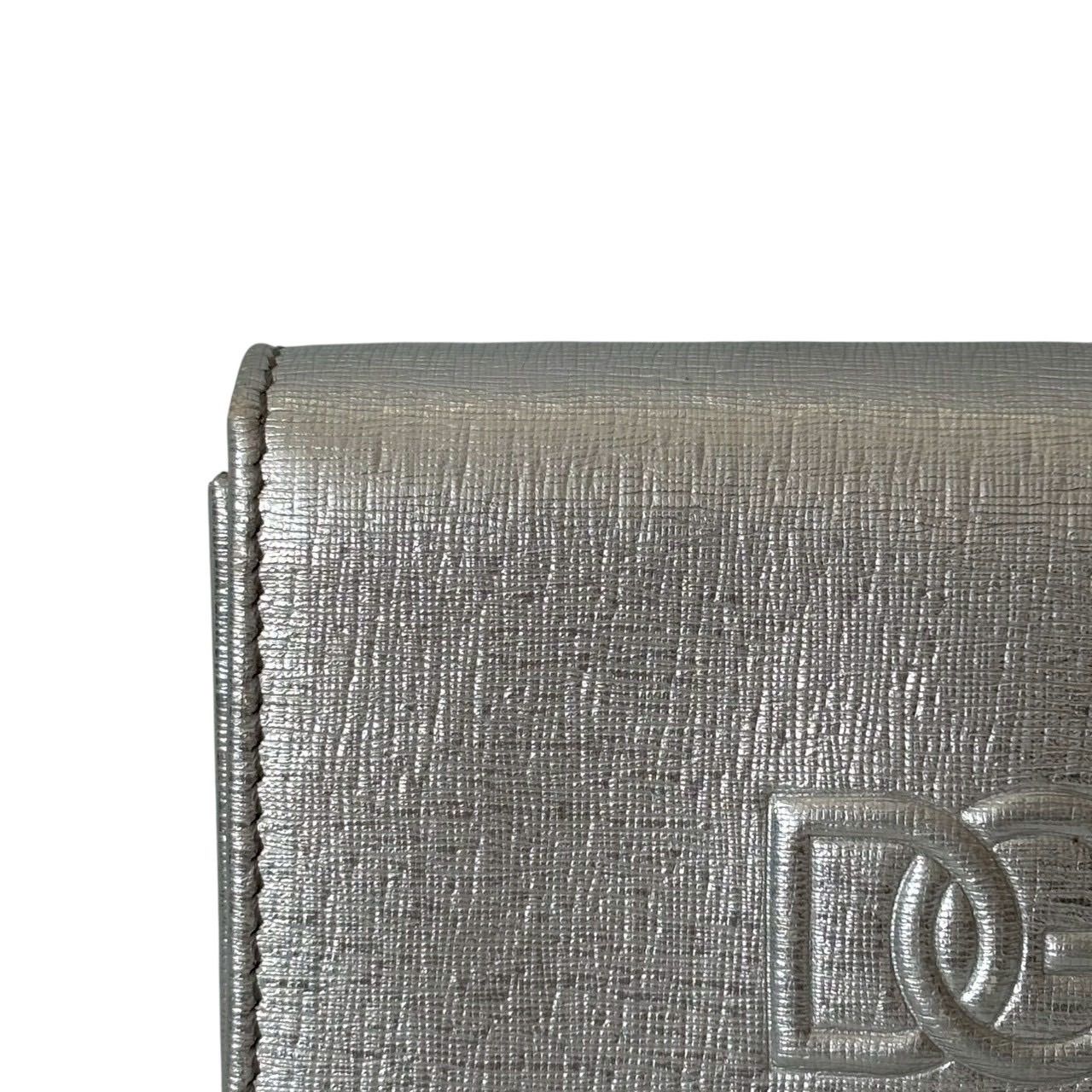 DOLCE&GABBANA ドルチェ&ガッバーナ D&G ドルガバ カードケース パスケース 名刺入れ コンパクト ロゴ レザー シルバー