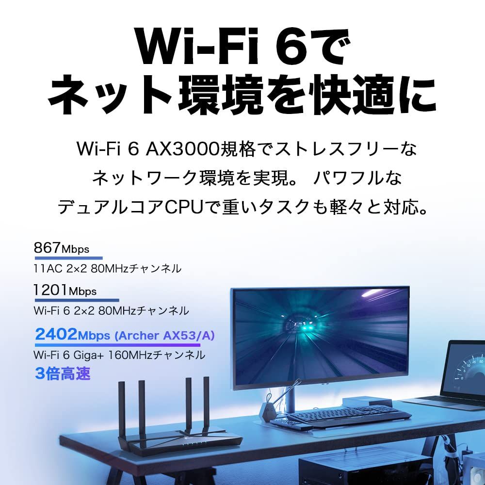 [特徴] コストパフォーマンスに優れたAX3000規格のWi-Fi 6対応無線LANルーター[Wi-Fi規格値] 2402Mbps +
