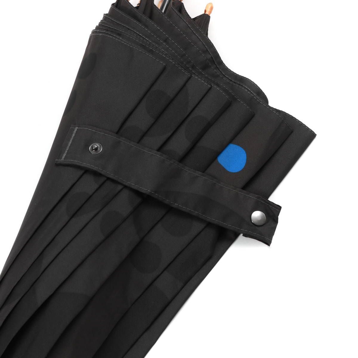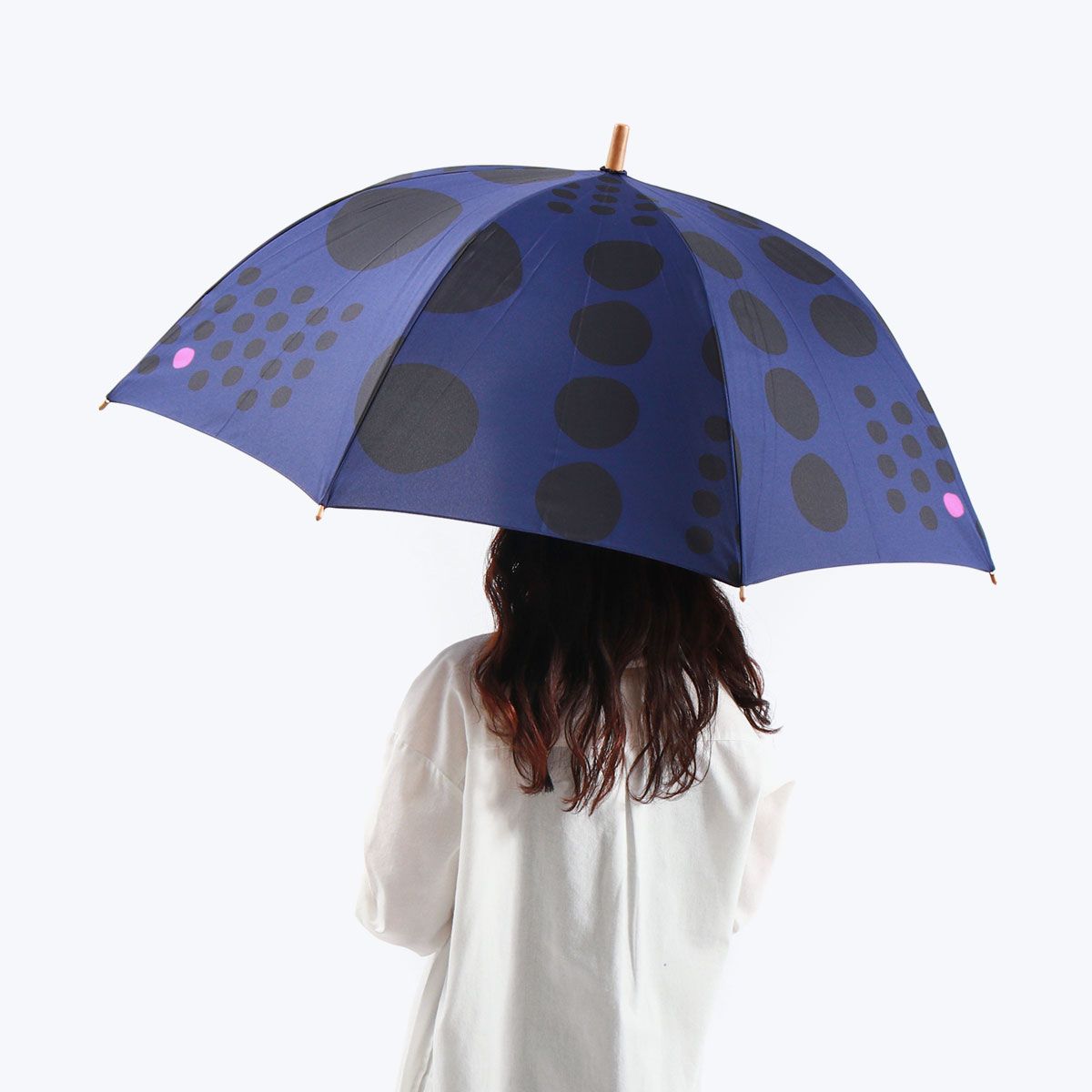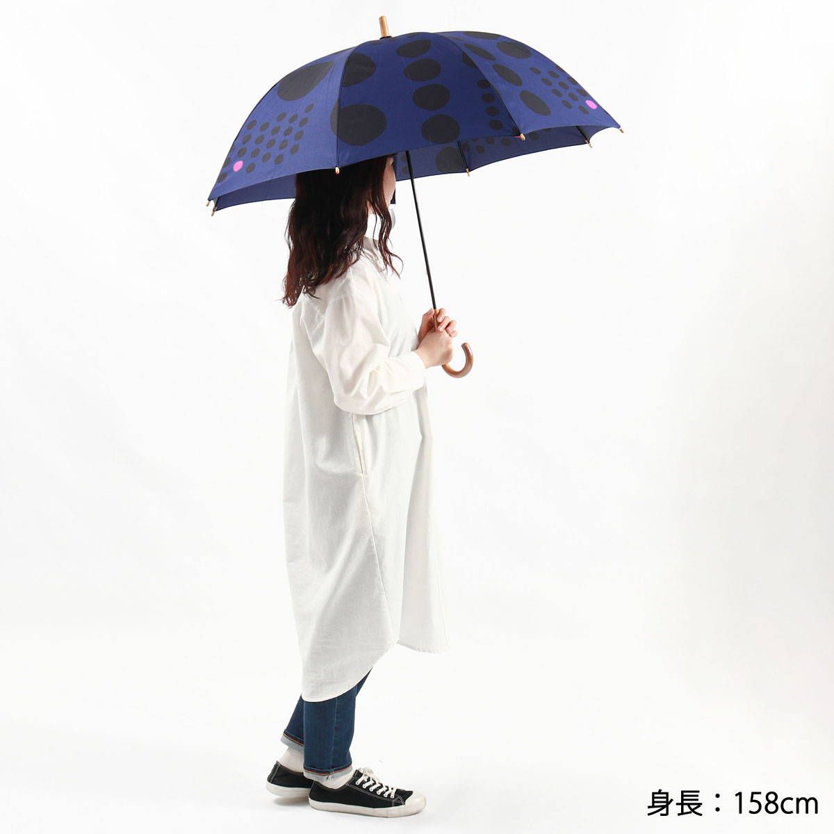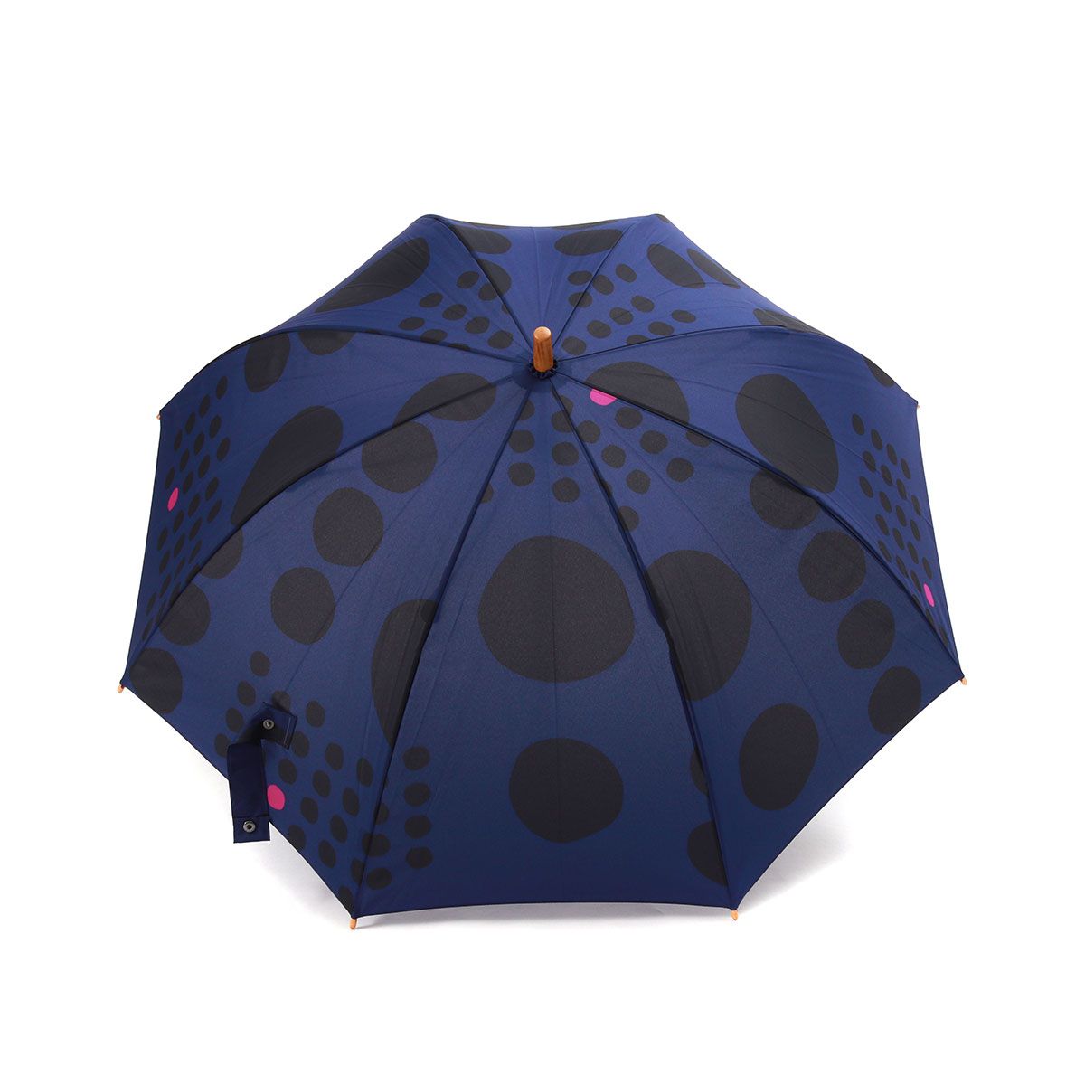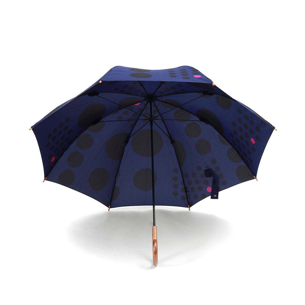 大小さまざまな丸型模様が目を引く、ポップな雰囲気の長傘。親骨と受骨には、丈夫で軽いグラスファイバーを使用し、風に煽られても耐えることができる耐久性を持っています。ハンドルや石つき、つゆ先部分には木製パーツが施され、上品かつナチュラルな印象に。個性と落ち着きを感じさせるデザインが魅力のアイテムです。
