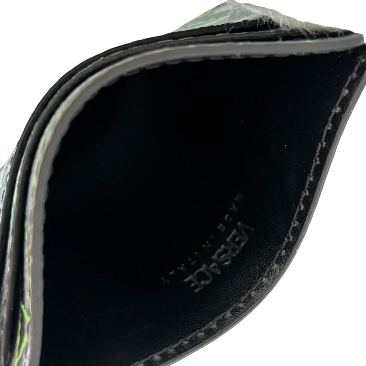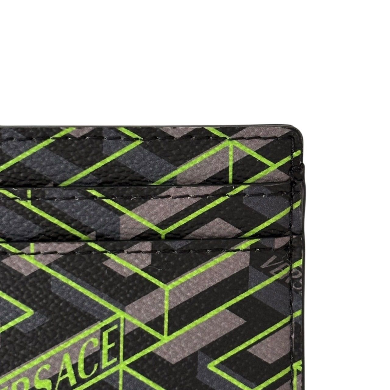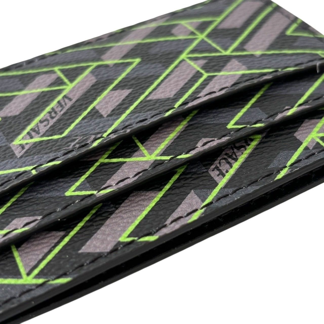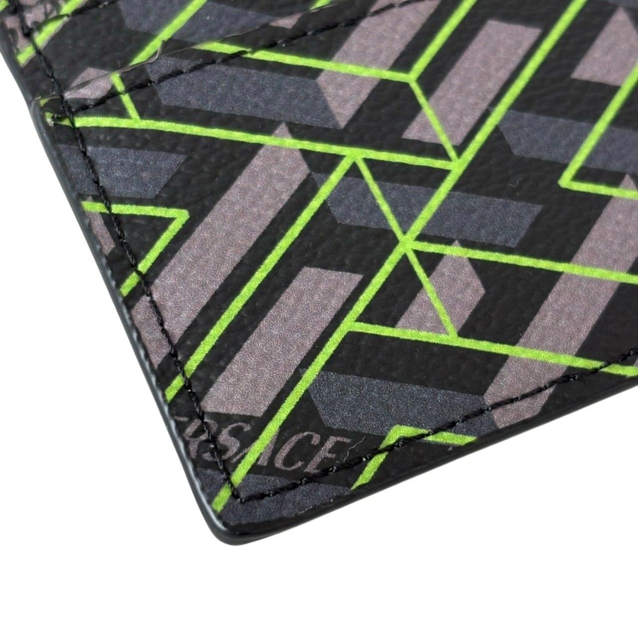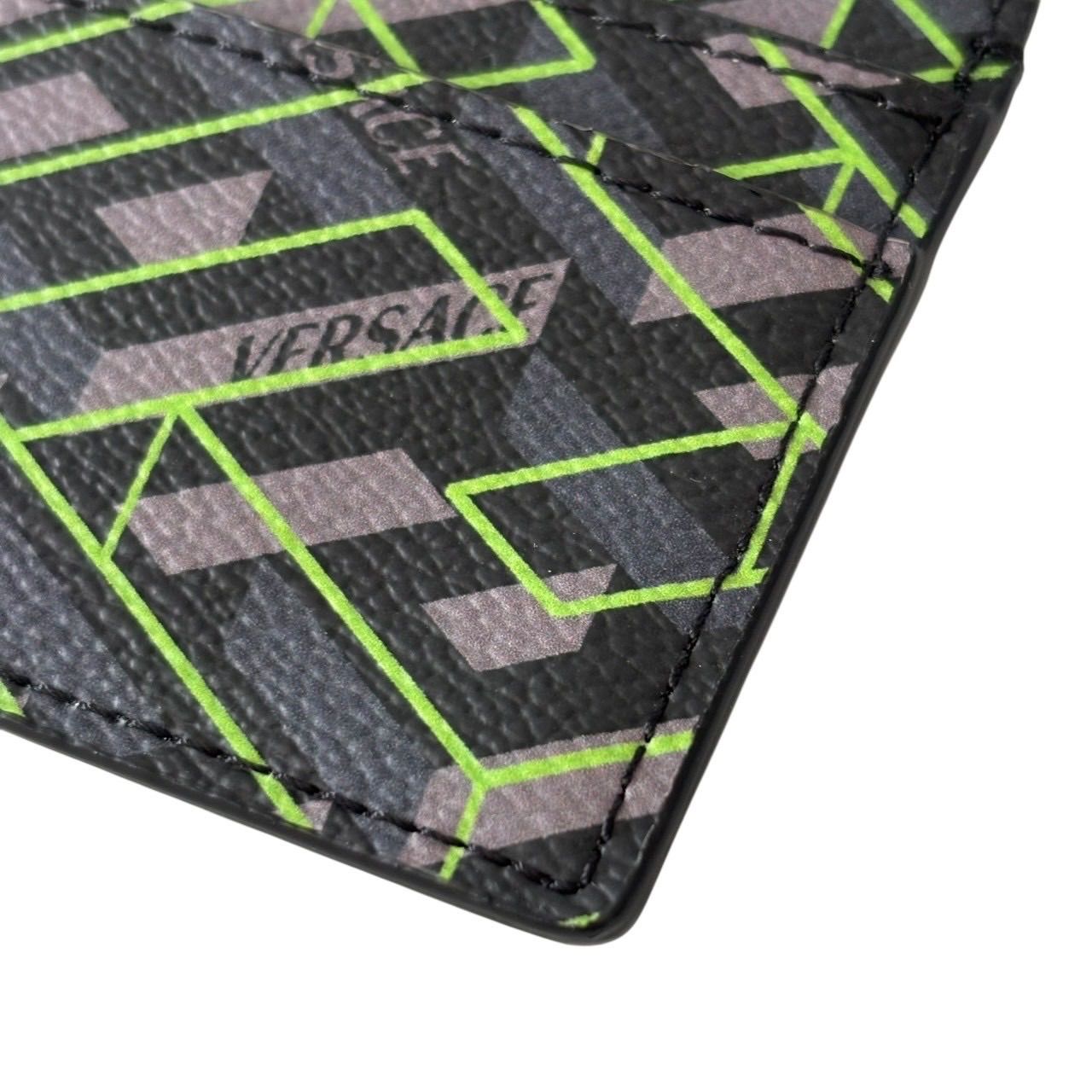 【未使用】VERSACE ヴェルサーチ カードケース パスケース 名刺入れ グレカ柄 ロゴ レザー グレー マルチカラー