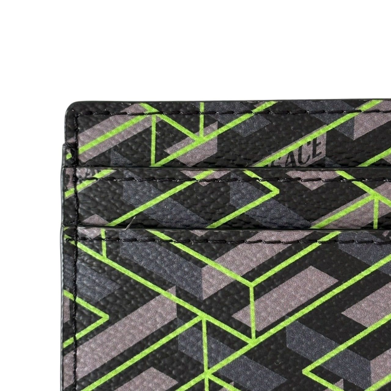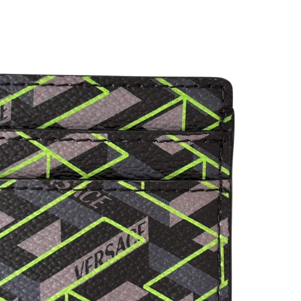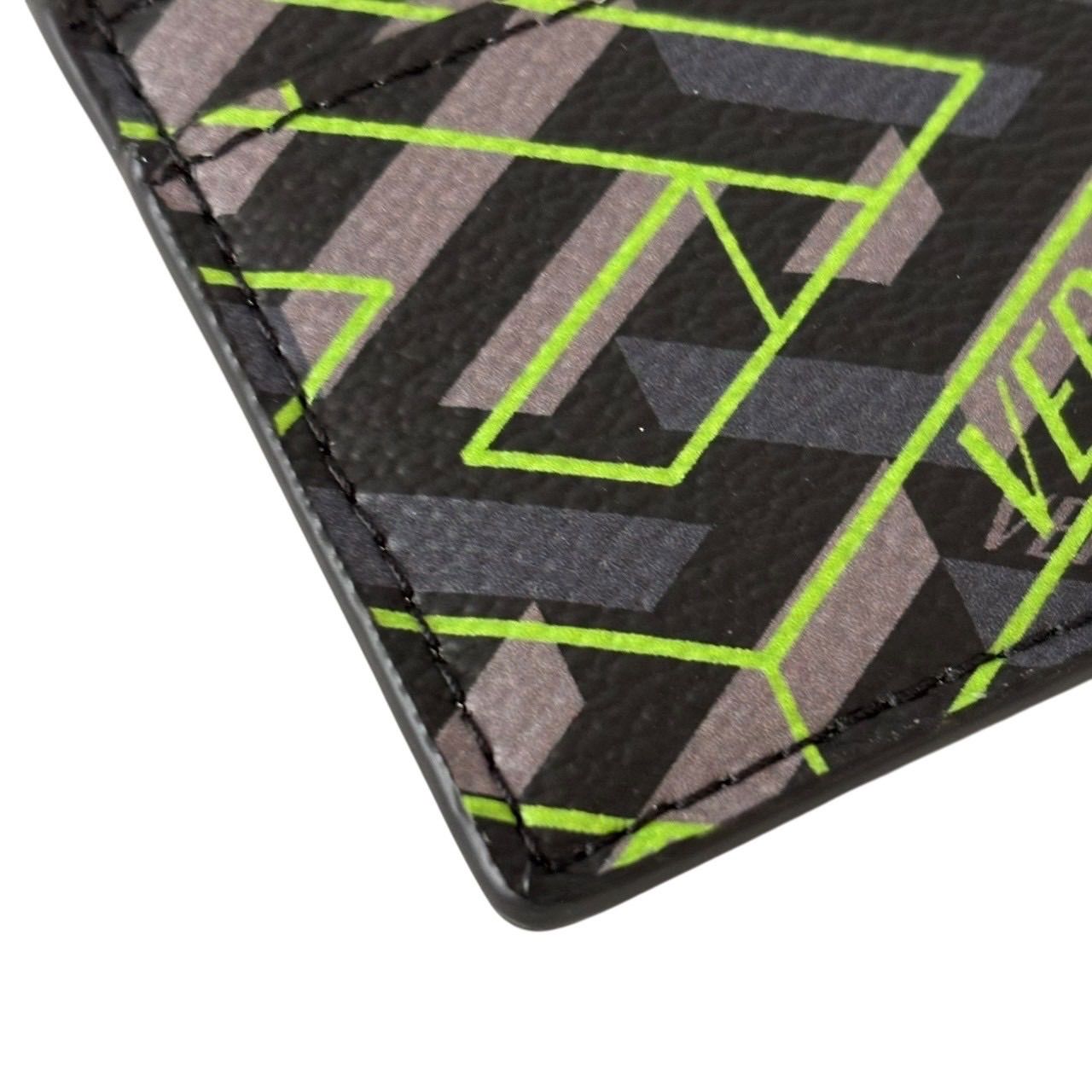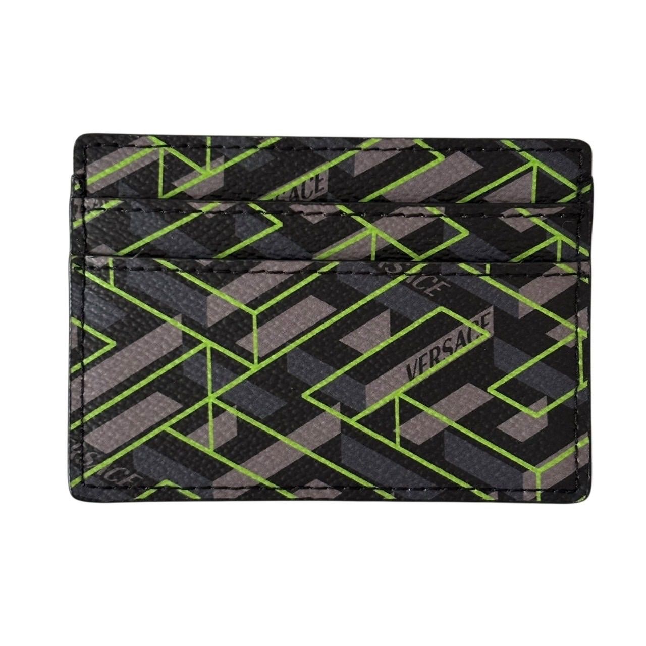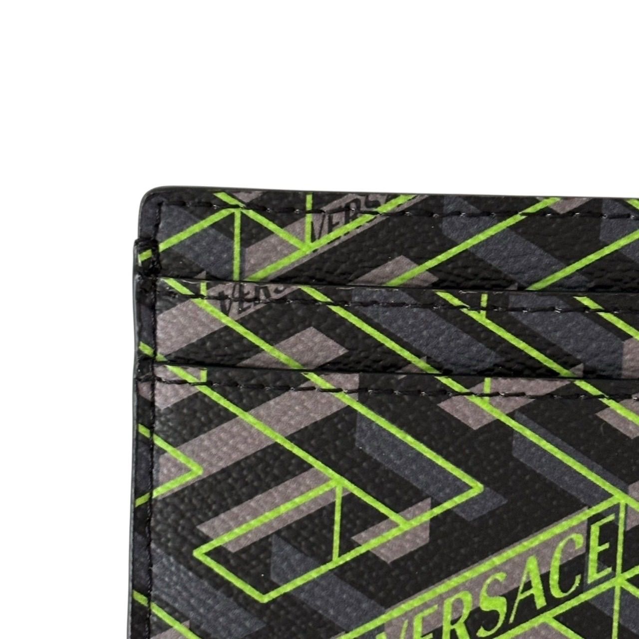 【未使用】VERSACE ヴェルサーチ カードケース パスケース 名刺入れ グレカ柄 ロゴ レザー グレー マルチカラー