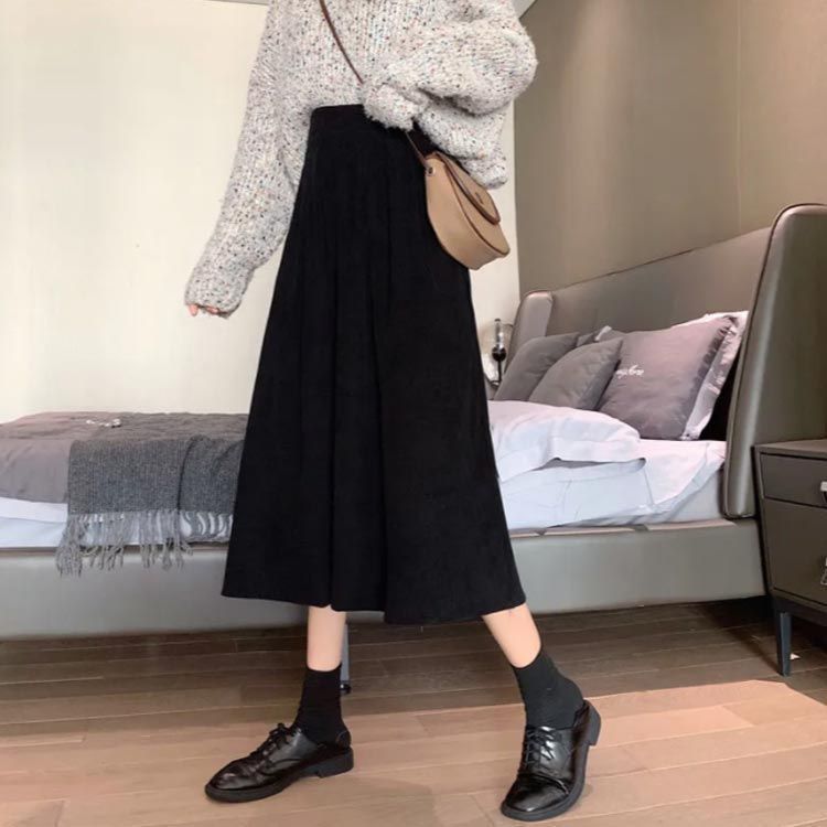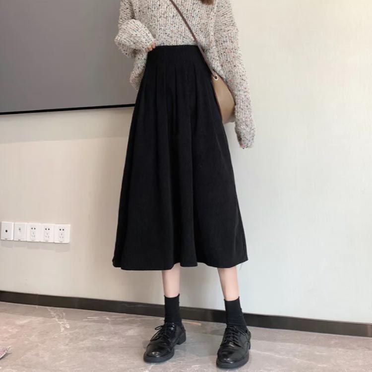 ゆったりシルエットの温かさ、コーデュロイスカート