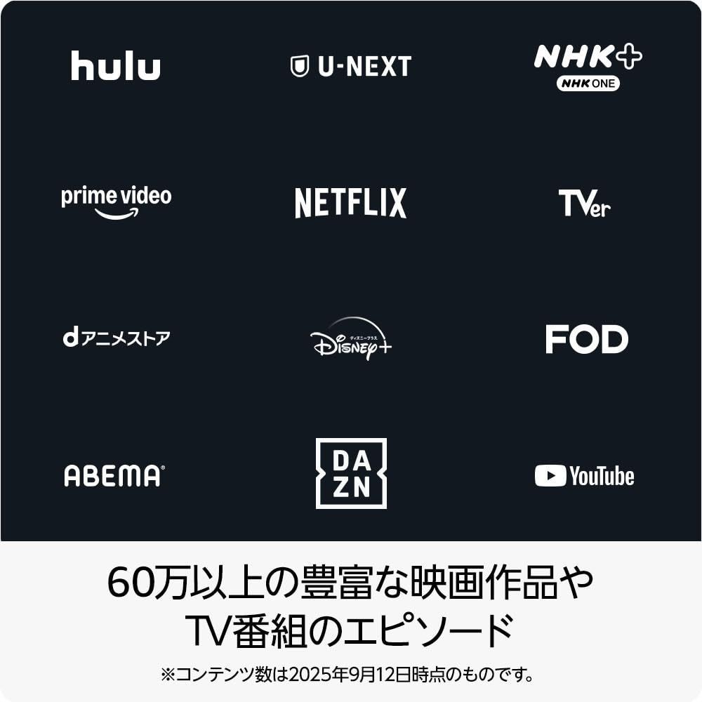 ・対応アプリ:Prime Video / Netflix / YouTube / Hulu / ABEMA / TVer など豊富