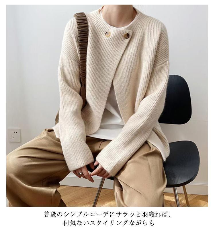レディース 秋冬 トップス ボタン付き オフィス カーディガン 女性 ニットカーディガン 秋服 通勤 アウター 長袖 ショート丈 冬 オフィス 厚手 可愛い おしゃれ 暖かい 大人カジュアル#timon606931