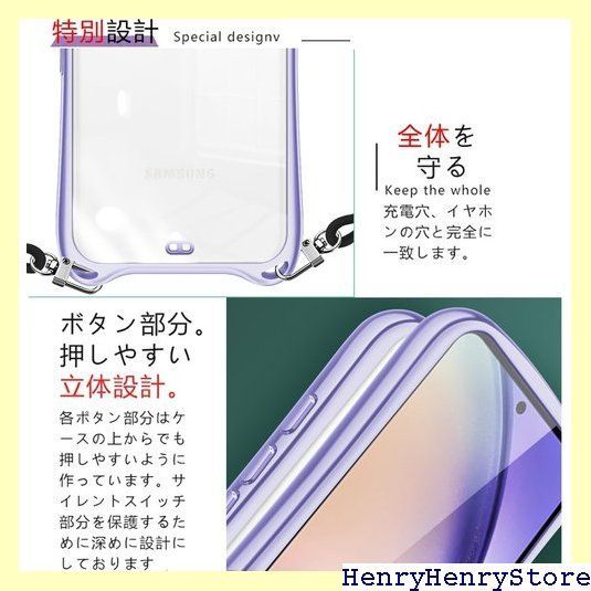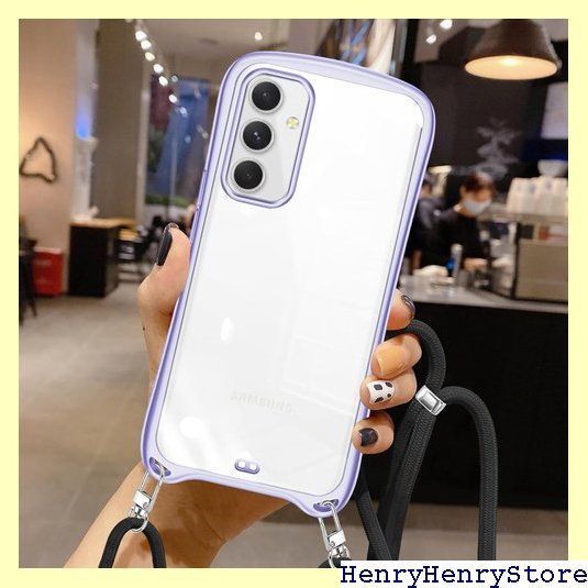 Galaxy A54 ケース クリア ショルダー SC-53D SCG21 ギャラクシーA54 5G スマホケース 耐衝撃 カバー 肩掛け 首掛け 斜めかけケース 可愛い かわいい 韓国 透明 TPU シリコン メッキ加工 TPUバンパー 長さ調整可能 取り外し可能 ライトパープル 848