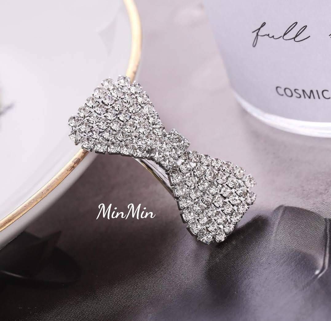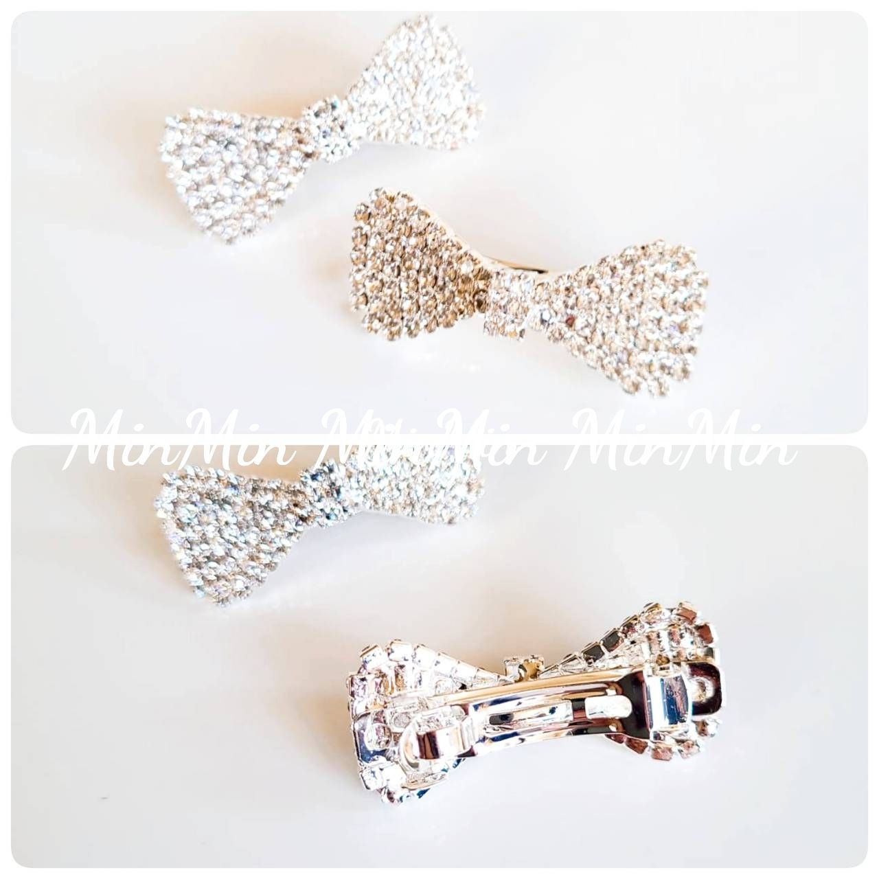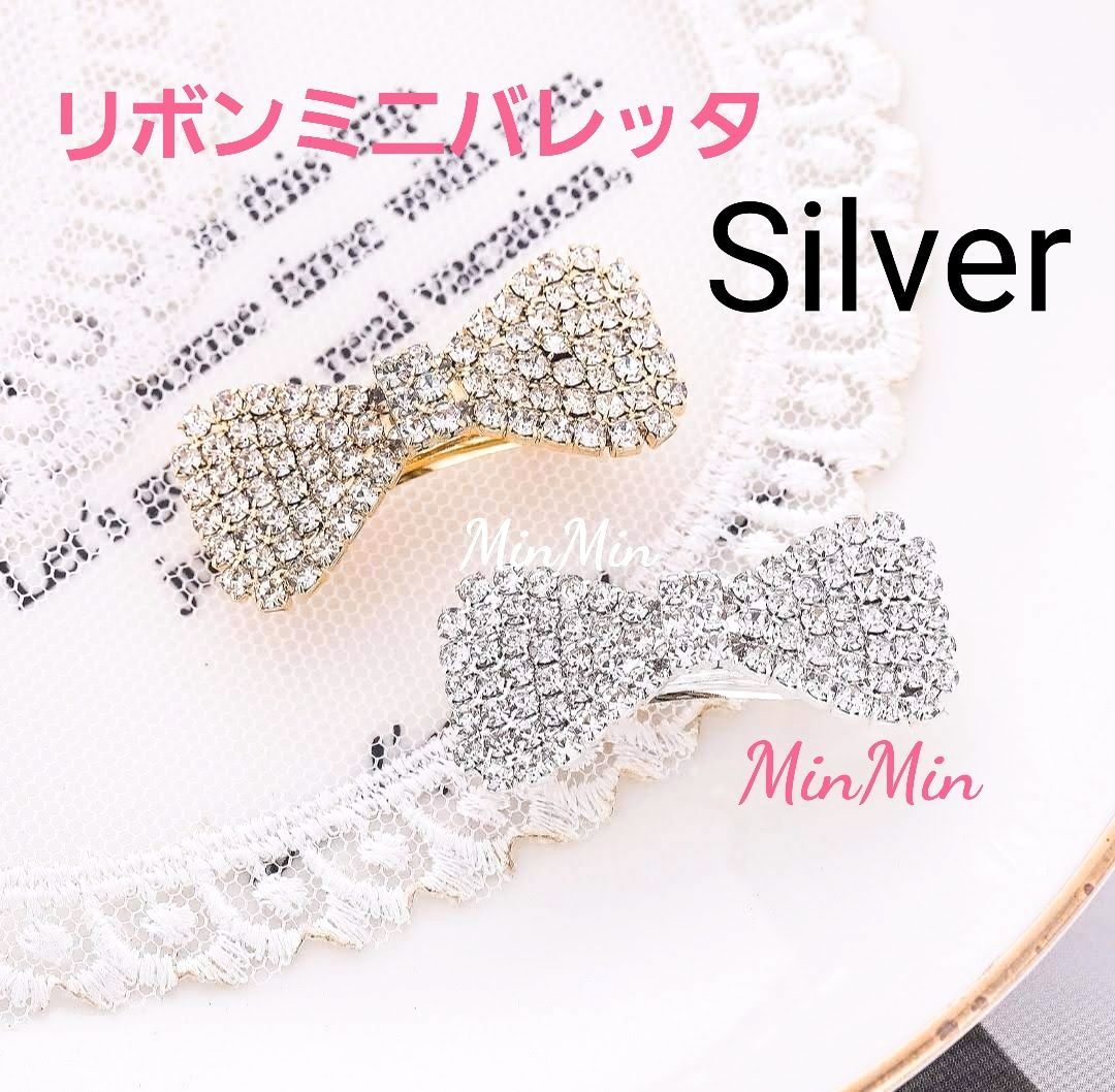 リボン型ミニバレッタ ラインストーン きらきら バレッタ♡シルバー 2個セット キッズバレッタ ヘアアクセサリー