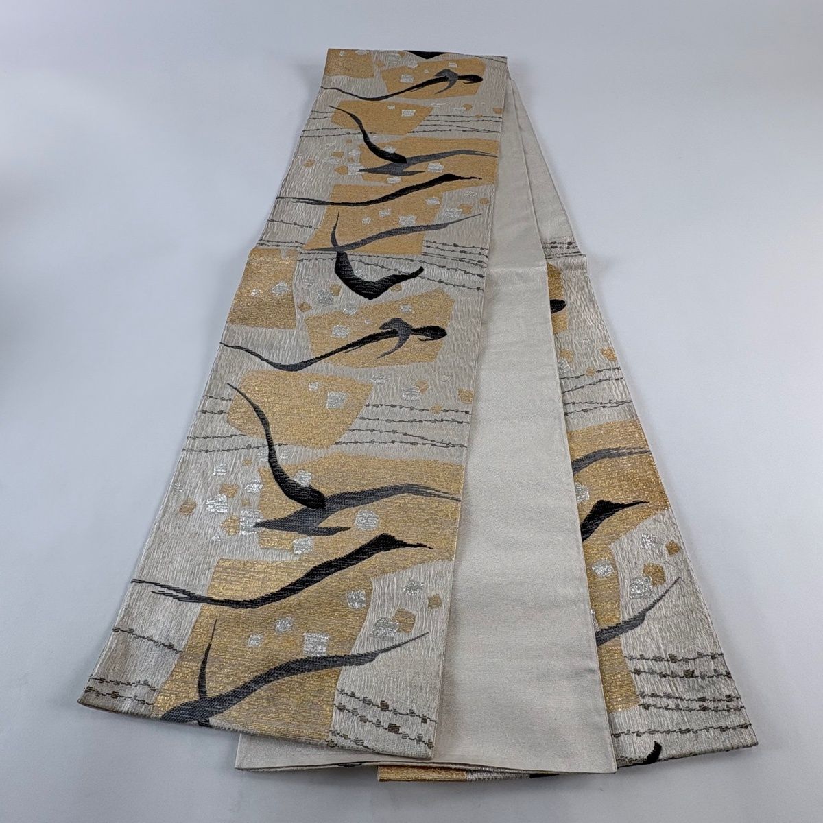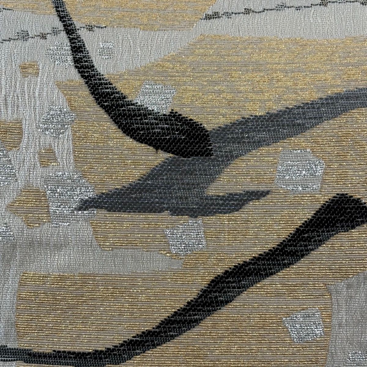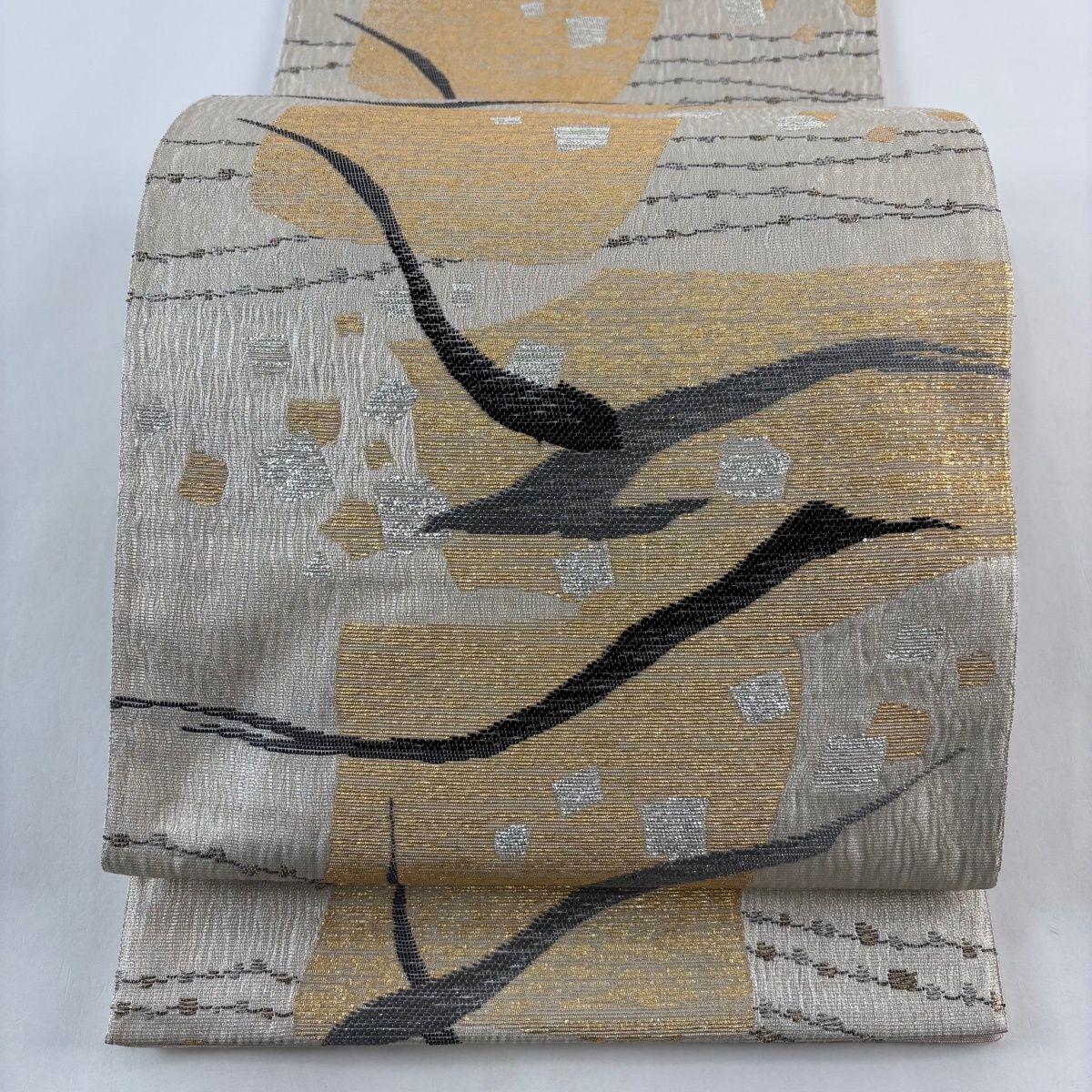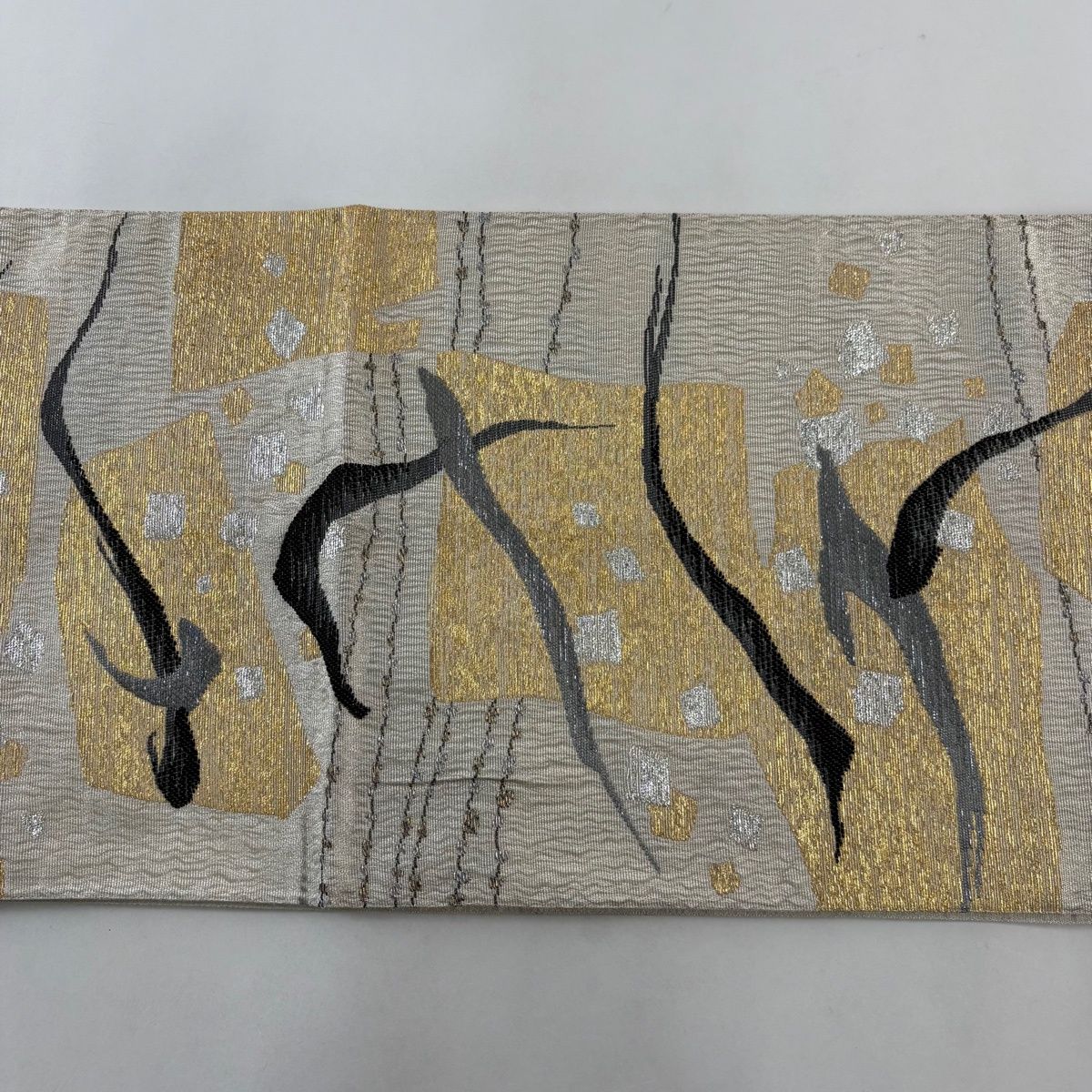 中無地にシミ、中無地締め跡沿いに薄汚れ、表地所々に箔の傷み、表地所々に金銀糸の変色がございます。