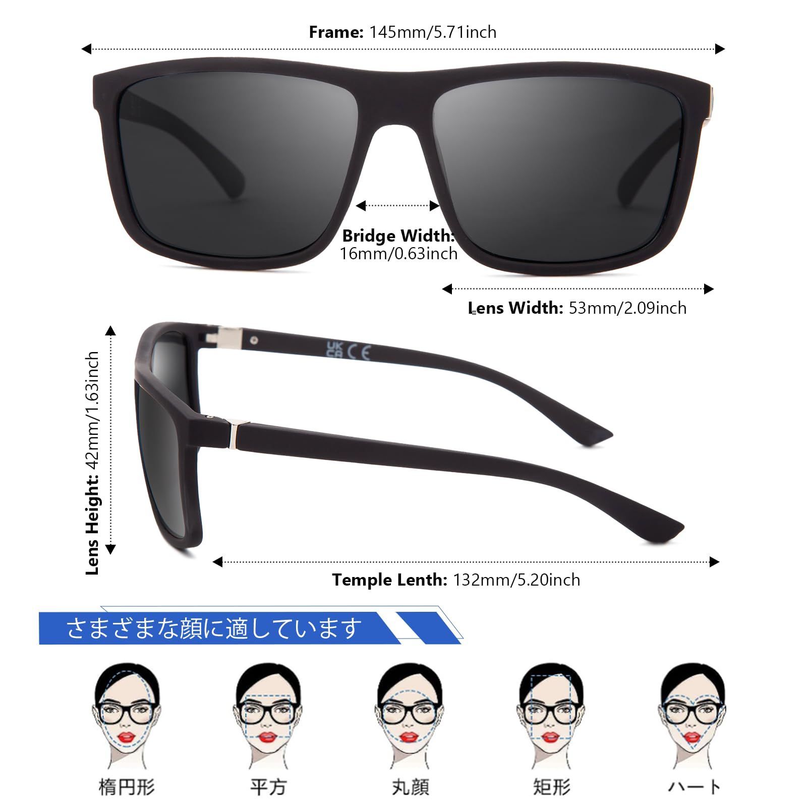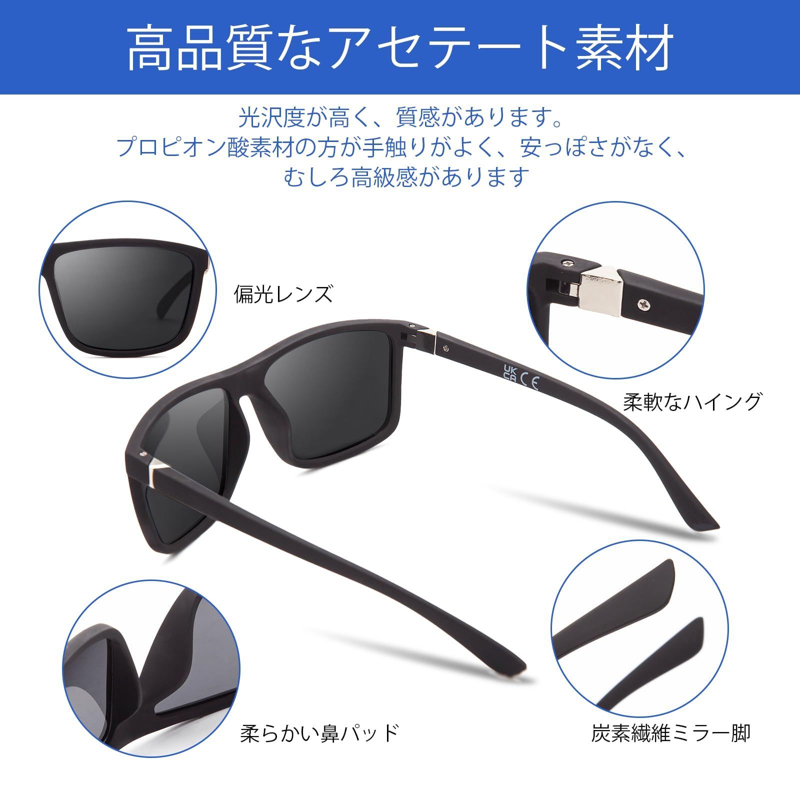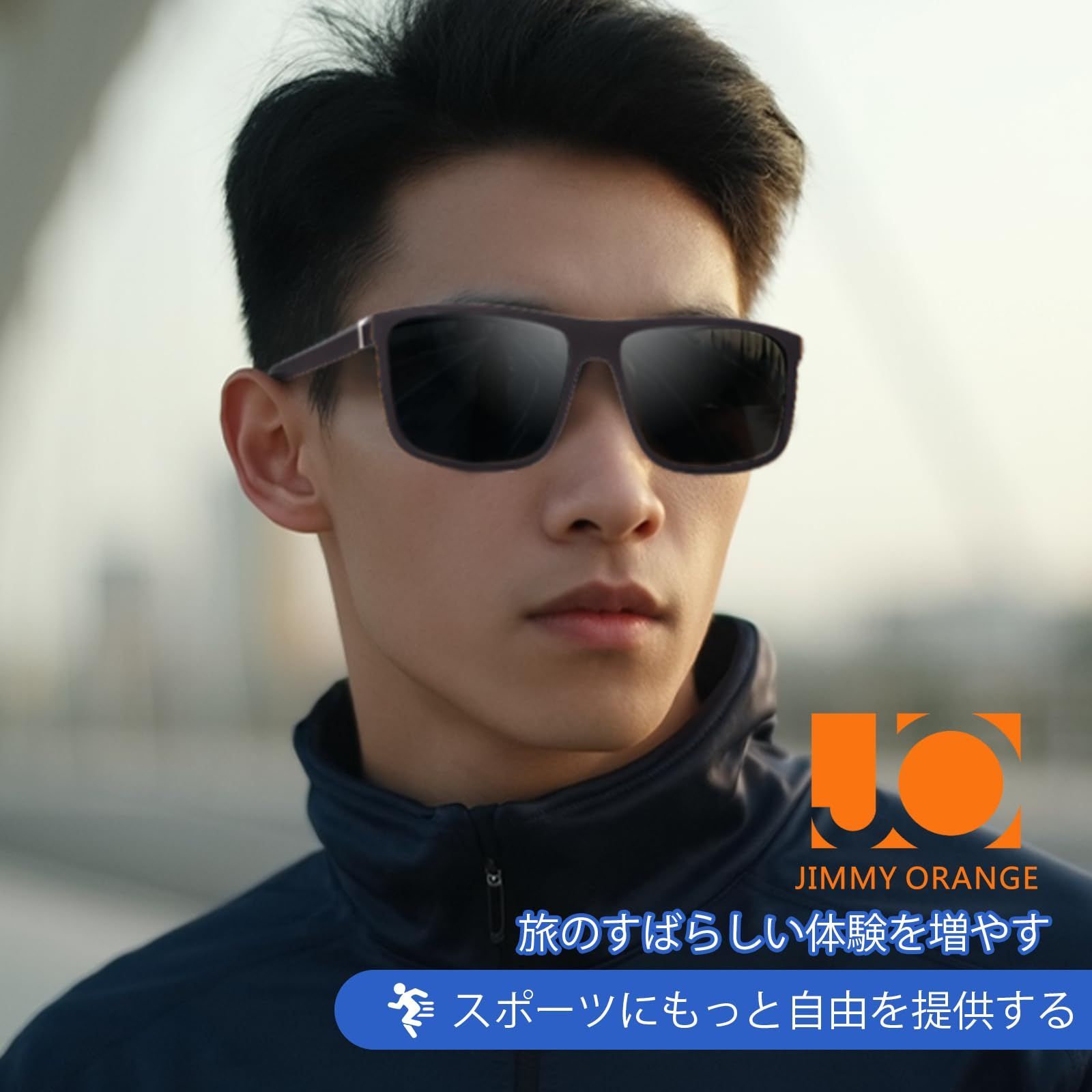 [JO] 偏光レンズ サングラス 超軽量 UV400 TAC 紫外線防止 自転車 登山 釣り 野球 ゴルフ ランニング ドライブ バイク テニス メンズ ース ブラック スクエアフレーム