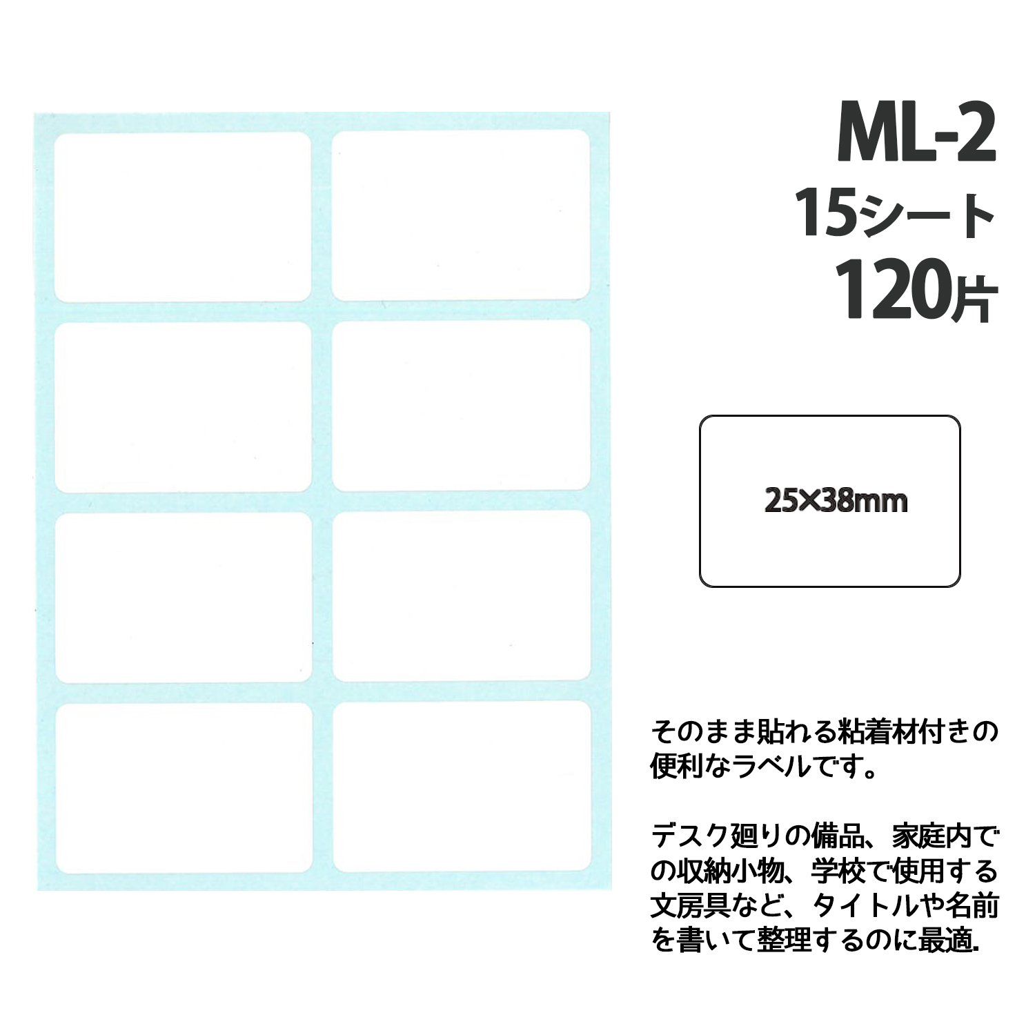 【サイズ】25mm×38mm【入数】8片×15シート(120片入)【基材】上質紙【粘着剤】アクリル系【ご注意】プリンタは対応してません。25mmX38mm