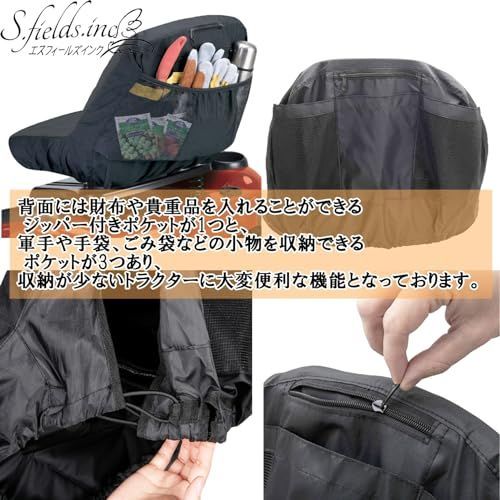 背面には財布や貴重品を入れることができるジッパー付きポケットが1つと、軍手や手袋、ごみ袋などの小物を収納できるポケットが3つあり、収納が少ないトラクターに大変便利な機能となっております。