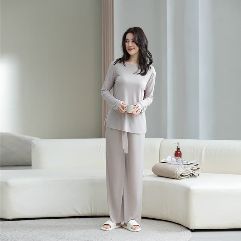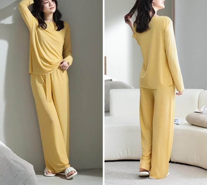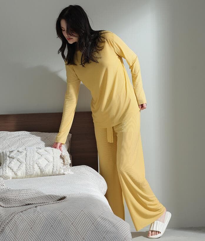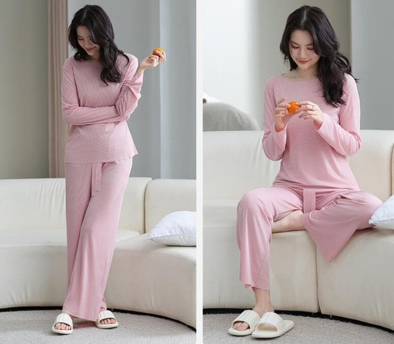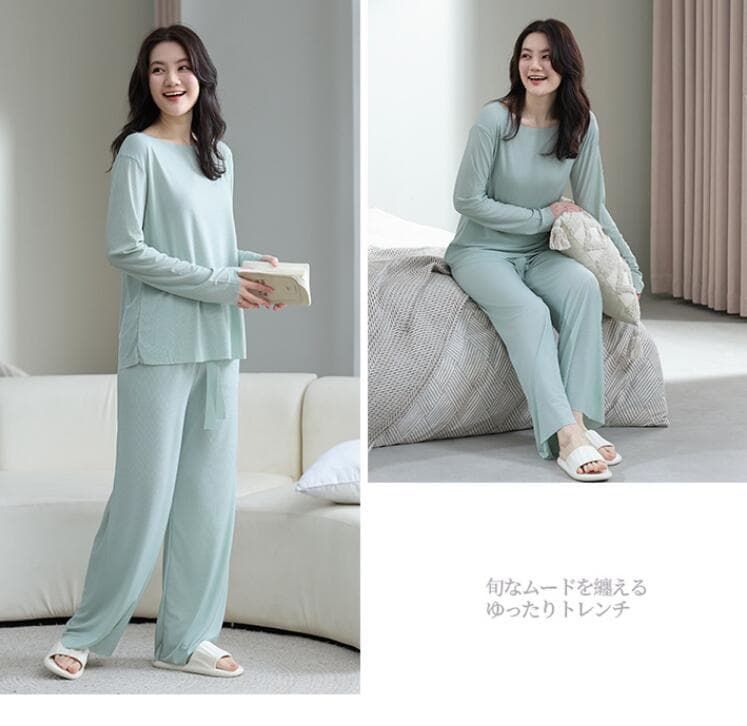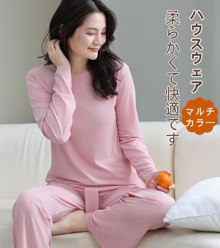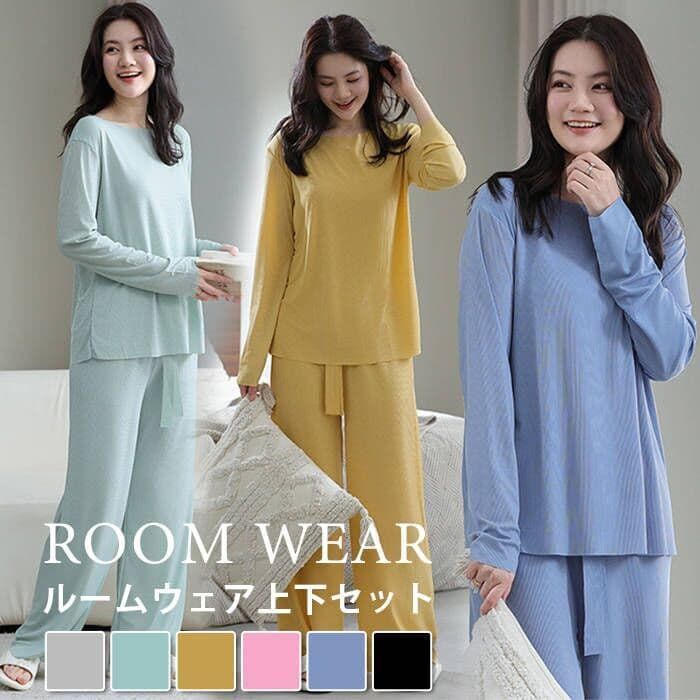 ルームウェア レディース セットアップ 上下セット 部屋着 寝巻き リブ 秋 秋用 冬用 長袖 長ズボン ロングTシャツ ロングパンツ 薄手 かわいい おしゃれ 大きいサイズ ゆったり 外出 入院 修学旅行 お泊り 宿泊学習lisha10