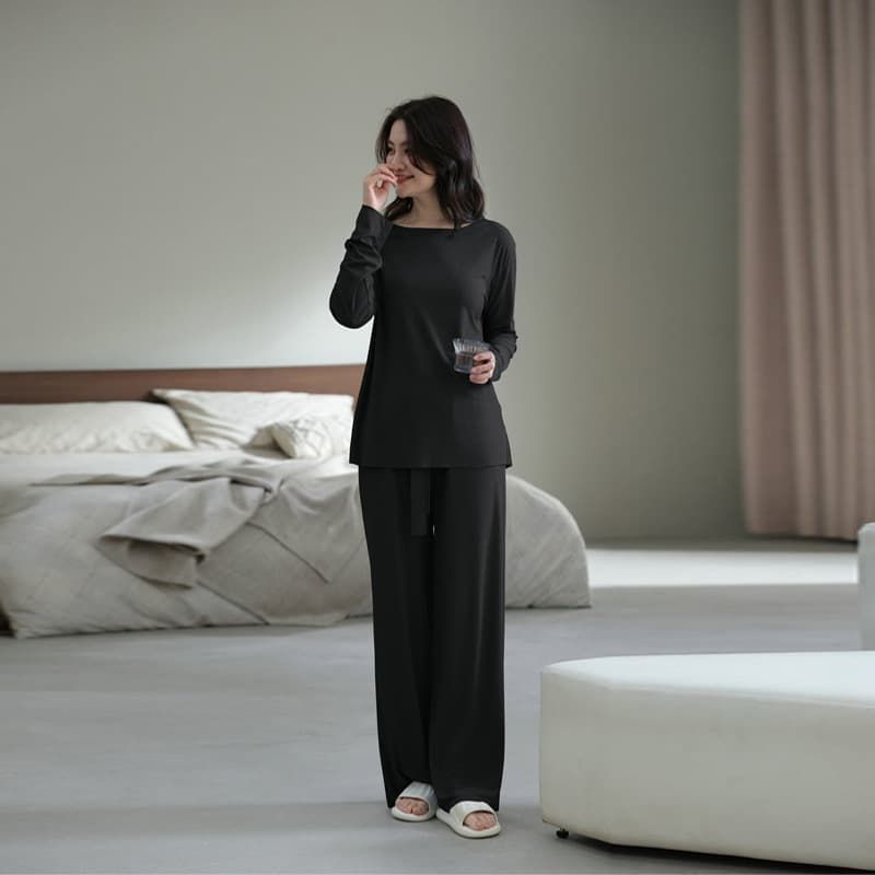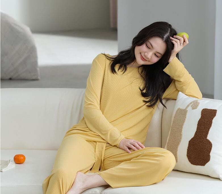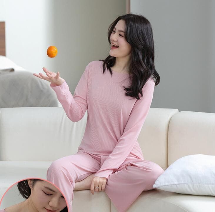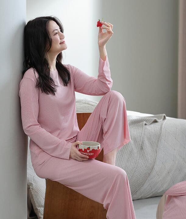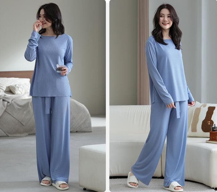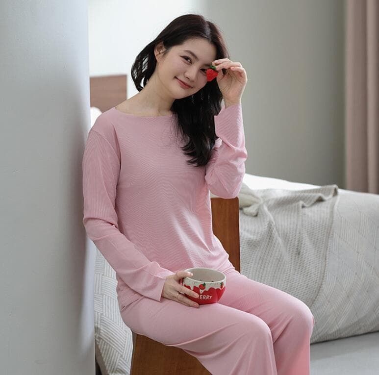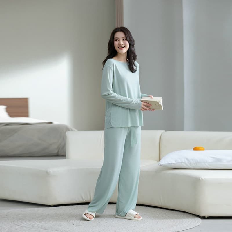 ルームウェア レディース セットアップ 上下セット 部屋着 寝巻き リブ 秋 秋用 冬用 長袖 長ズボン ロングTシャツ ロングパンツ 薄手 かわいい おしゃれ 大きいサイズ ゆったり 外出 入院 修学旅行 お泊り 宿泊学習lisha10