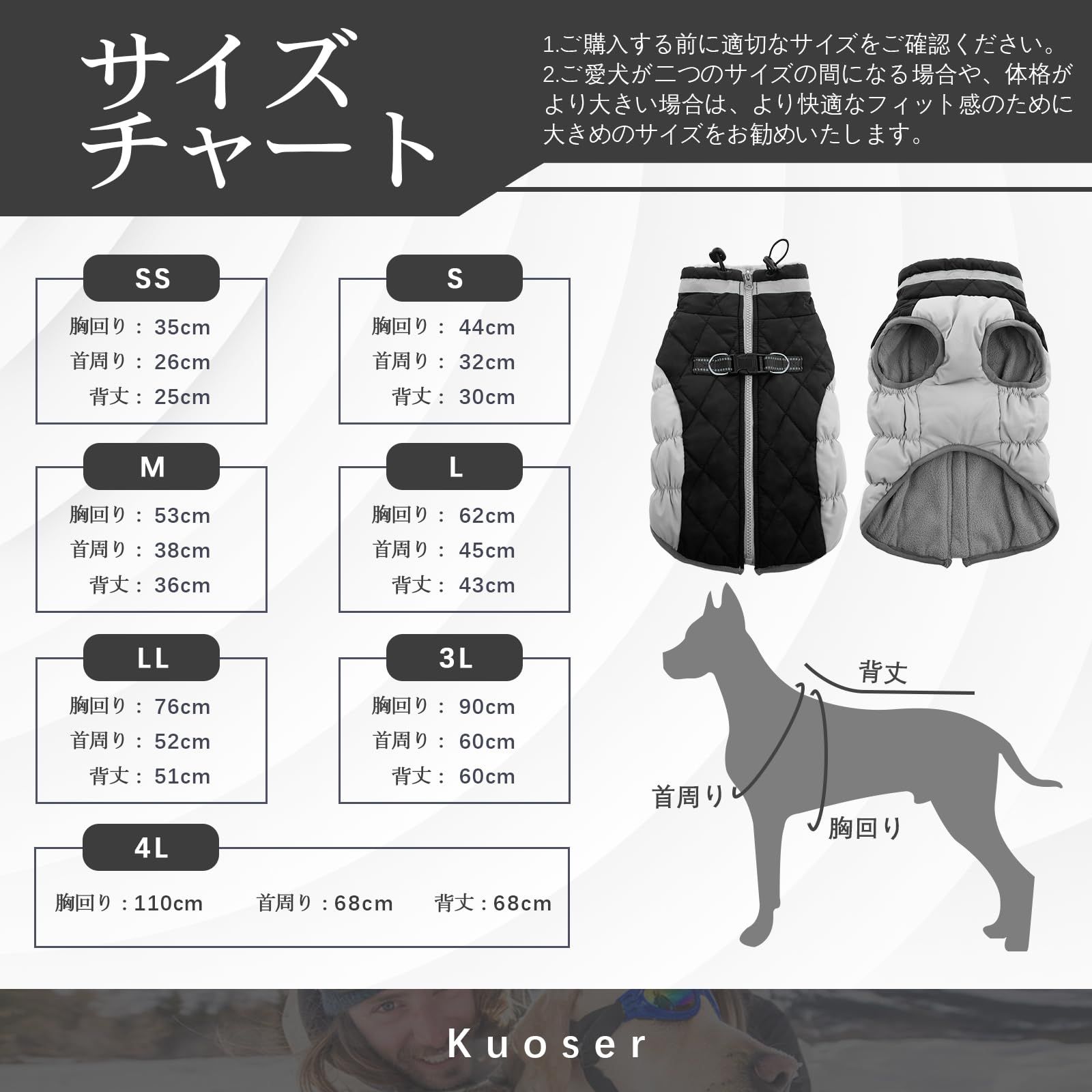 利用できる 7 つのサイズ: XS、S、M、L、XL、XXL、XXXL ほとんどすべての犬種のために適します。 テディ、チワワ、ビーグル、プードル、ブルドッグ、シュナウザー、ラブラドール、ゴールデンレトリバーなどです。普段着に最適で、秋冬の屋内外のあらゆる活動に適しています。