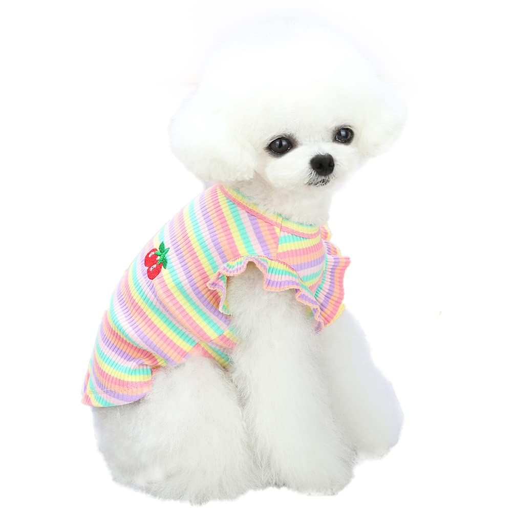 【可愛タンクトップ】猫と犬のお気に入りのドレス。クラシックなストライプの犬タンクトップ、洋服感覚で着用できるのも魅力です。毎日のお散歩が待ち遠しくなります。