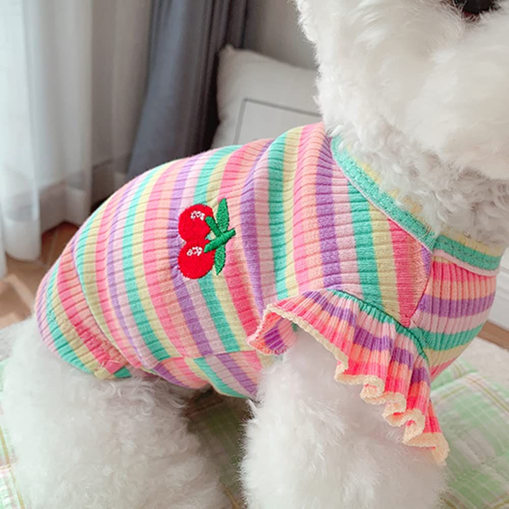 【春夏秋の贈り物です】細工が緻密である、子犬への素晴らしい春夏秋の贈り物です。ペットの肌を傷つけず、皮膚疾患を予防できます。毛まみれを避けるのために部屋着として使えます!洋服感覚で着用できるのも魅力で、女の子の可愛いがギュッと詰まったコットンキャンディみたいなペットワンピースです。
