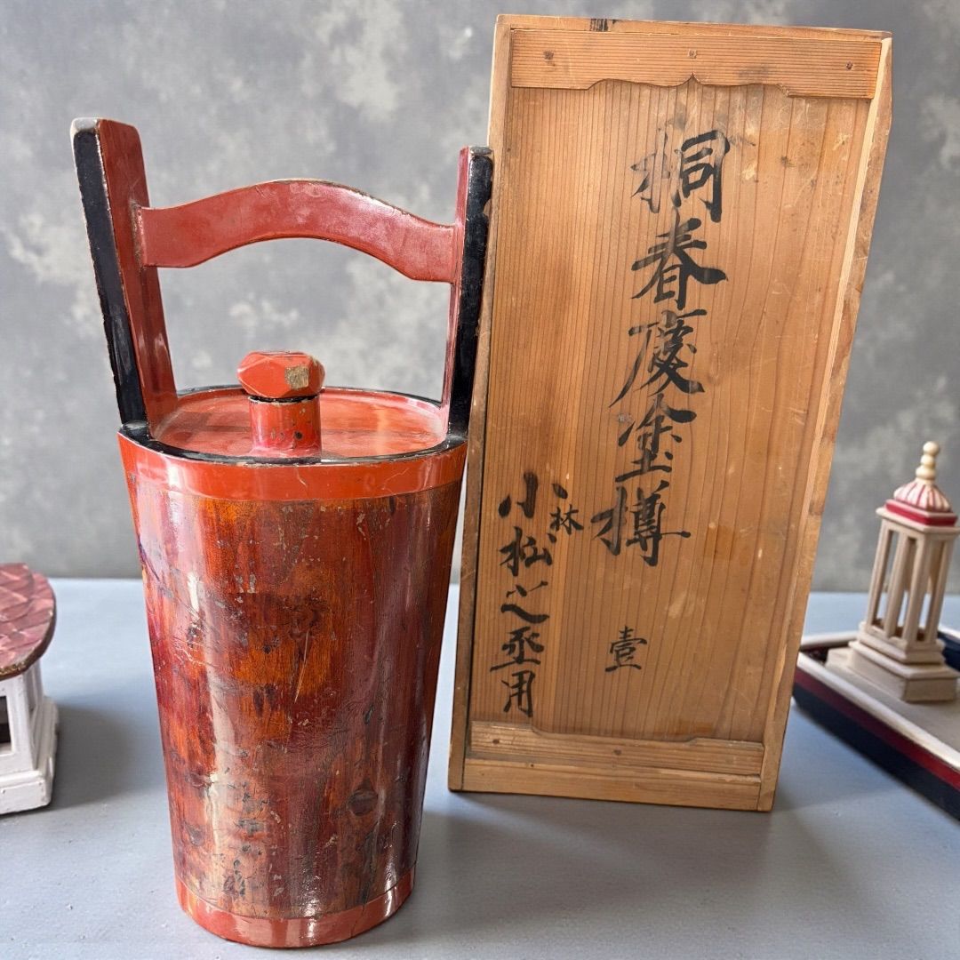 [桐春慶塗樽] 共箱 時代物 壺 室町時代 希少なサンプル 置物 漆塗 酒器 インテリア アンティーク 骨董