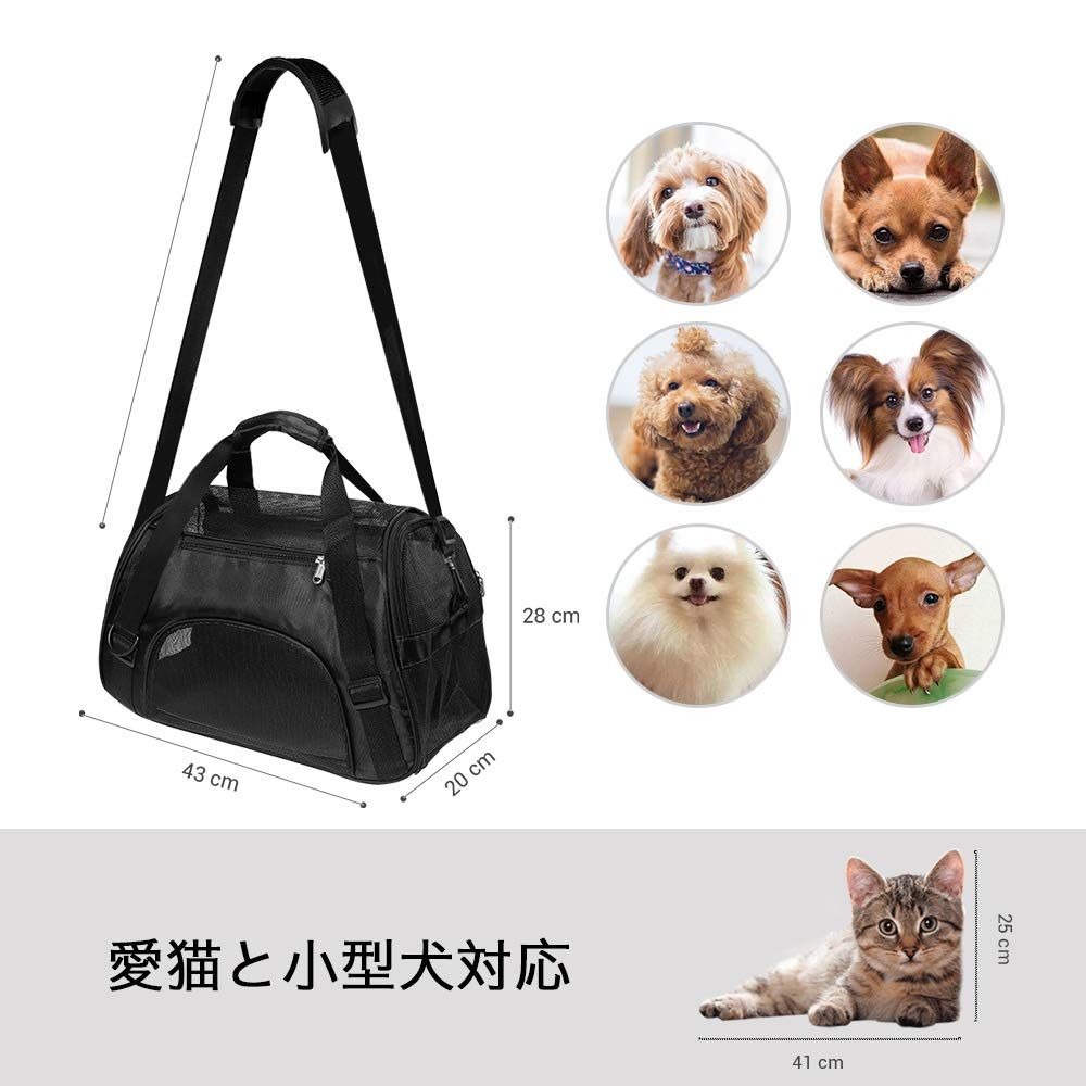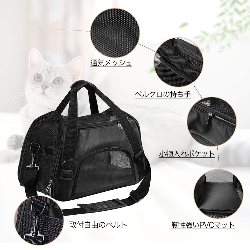 RHINOCATS キャリー バッグ ペットキャリー ショルダー 手提げ 猫・小型犬用 5kg耐荷重 3way キャリー バッグ お洒落 通気性 折りたたみ おでかけ 旅行 通院 防災 Sサイズ 黒