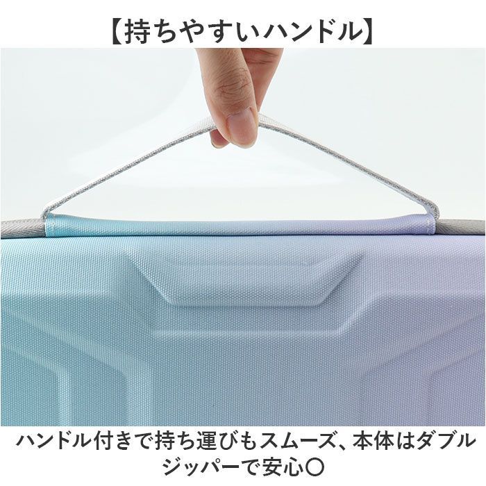 ハンドル付きで持ち運びもスムーズ、本体はダブルジッパーで安心〇