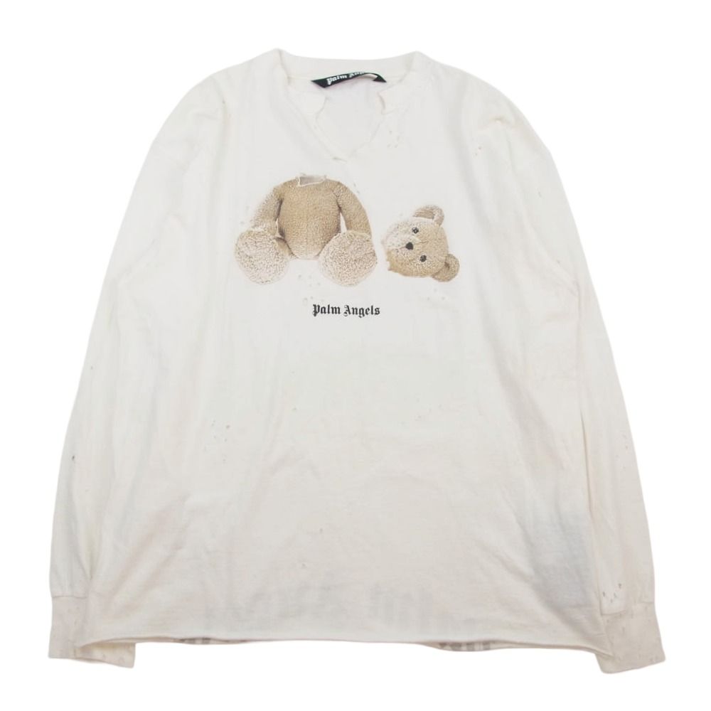PALM ANGELS パームエンジェルス PMAB040S23JER001 ベアプリント クラッシュ ダメージ加工 長袖 ロンT カットソー ホワイト系 XL【中古】