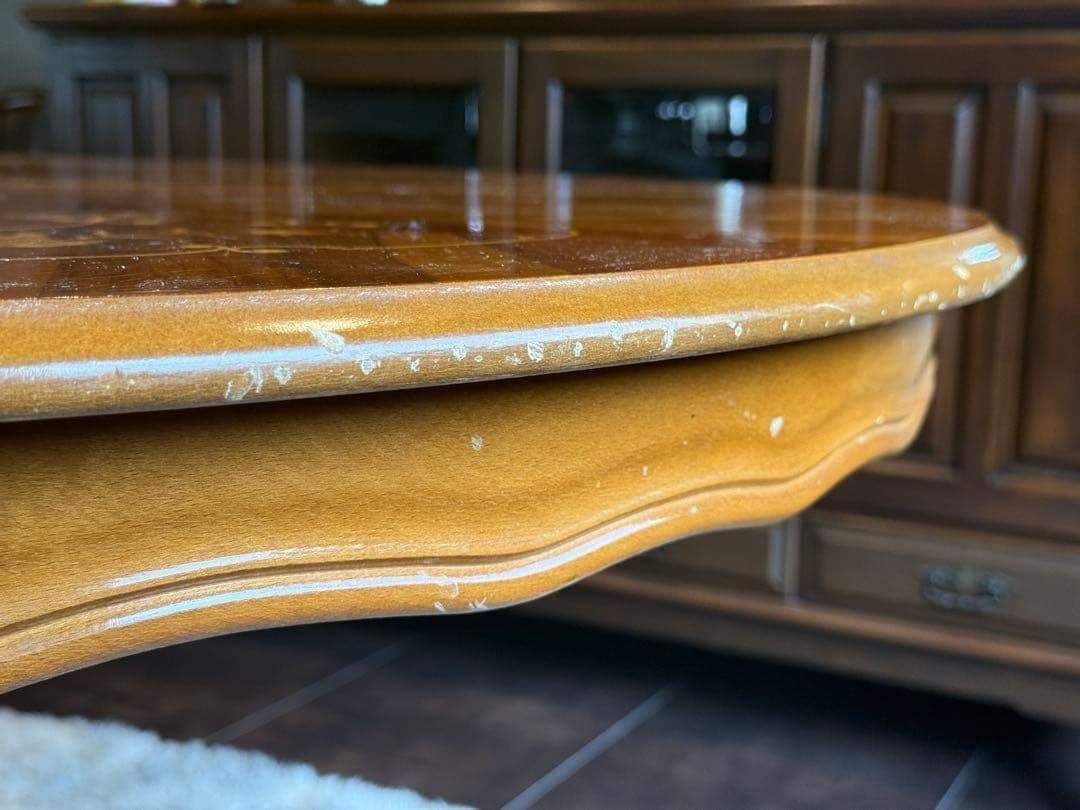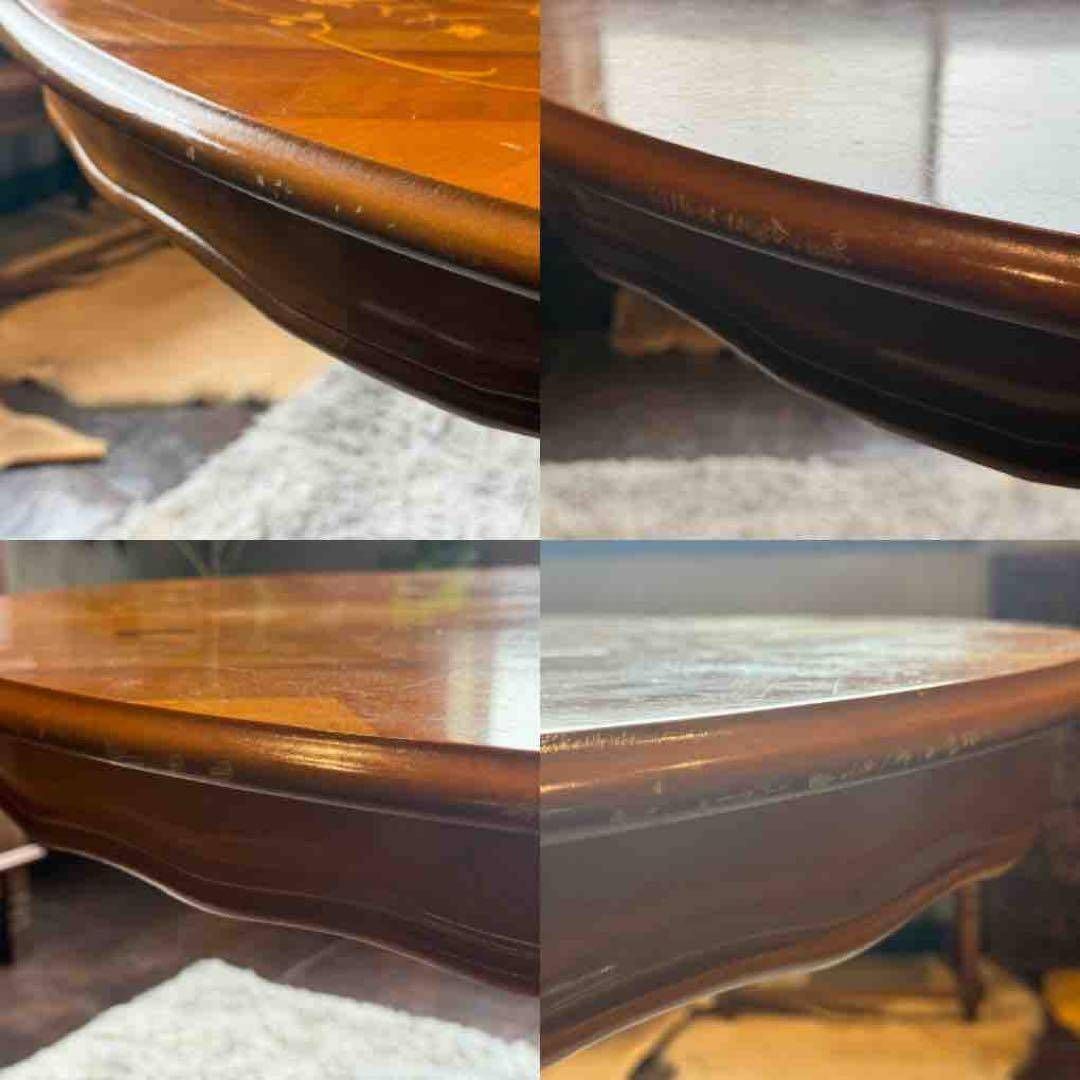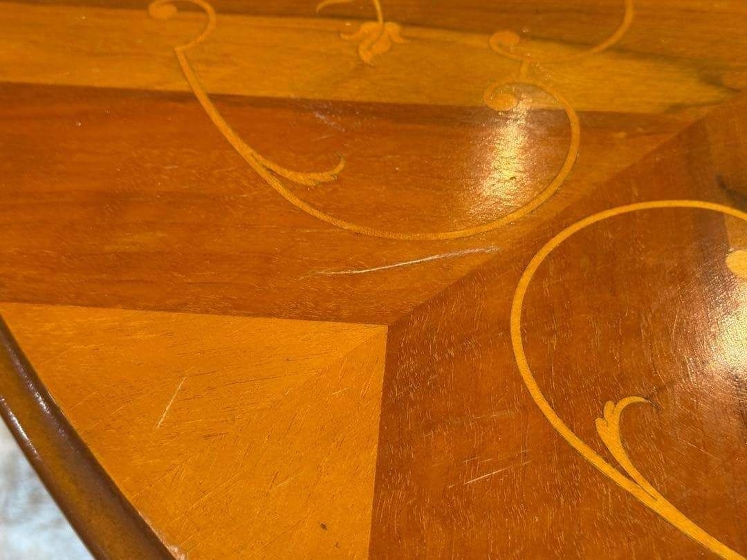 ラウンドテーブル 丸テーブル 象嵌 クラシック アンティーク ヴィンテージ レトロ 家具 クラシカル カフェテーブル 木製テーブル 一本脚 テーブルインテリア 店舗什器 丸テーブル ラウンドテーブル 艶感