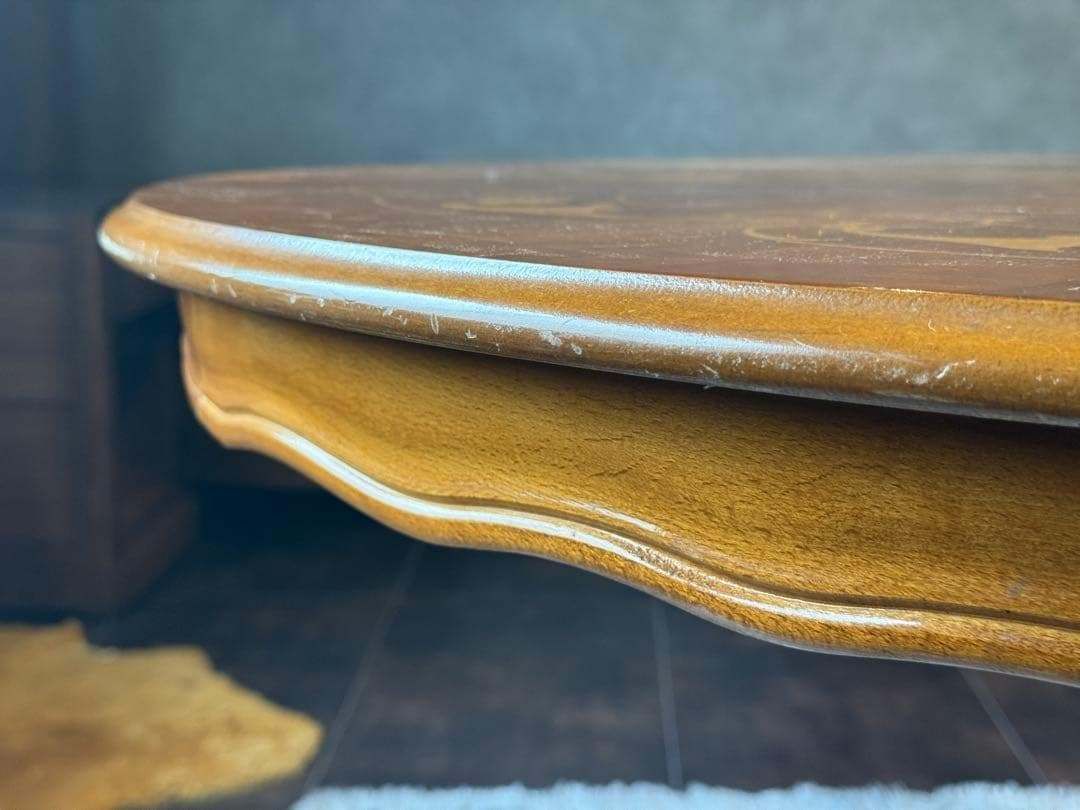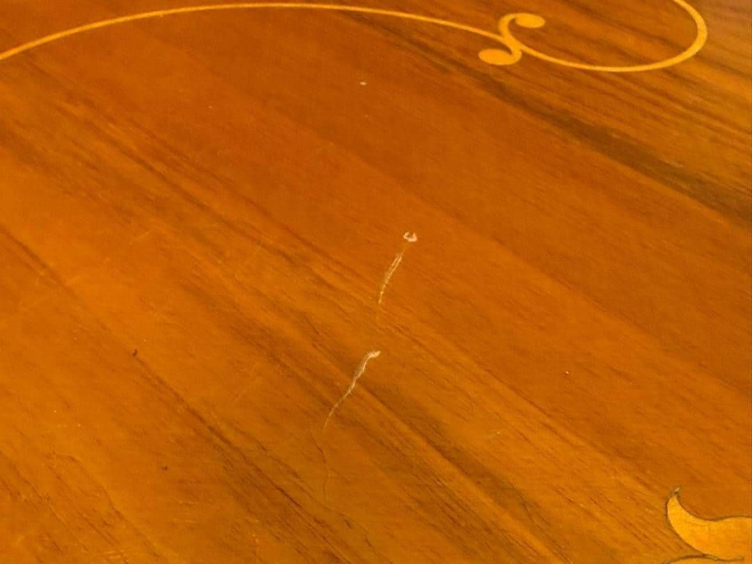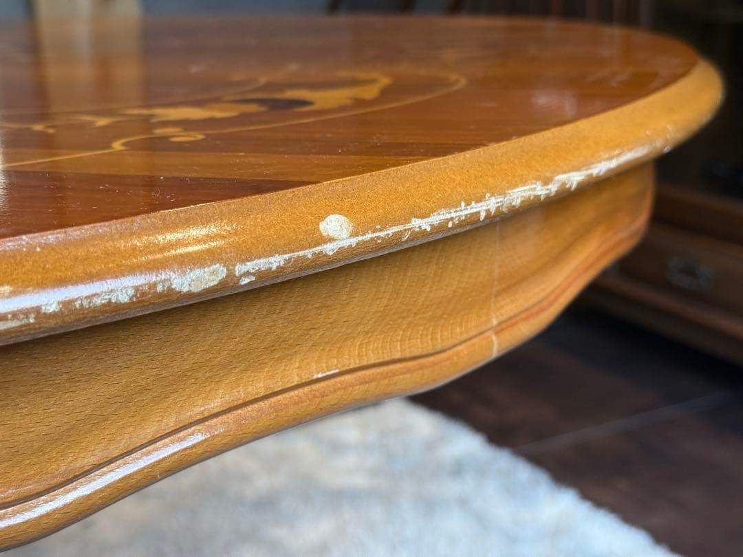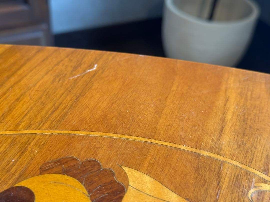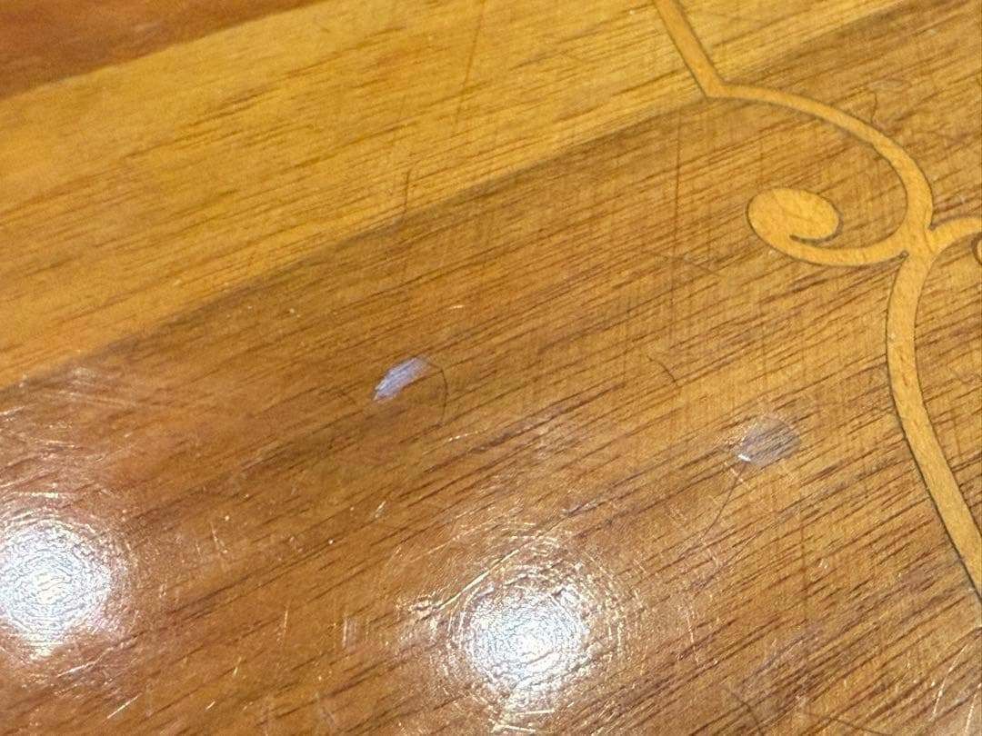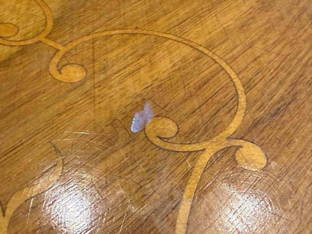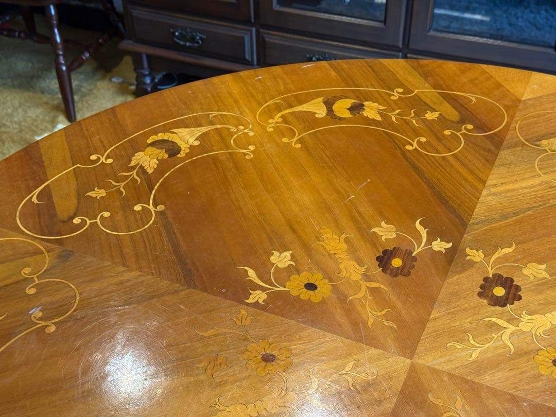 天板には美しい象嵌(ぞうがん)細工が施され、クラシカルで華やかな印象を演出します。
