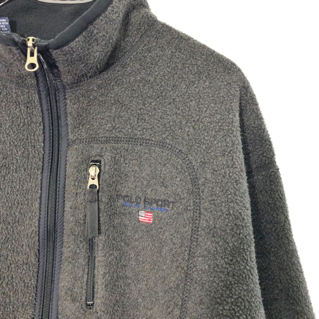 90年代 USA製 POLO SPORT ポロスポーツ ラルフローレン フリースジャケット グレー(メンズ XL)中古 古着 V9008