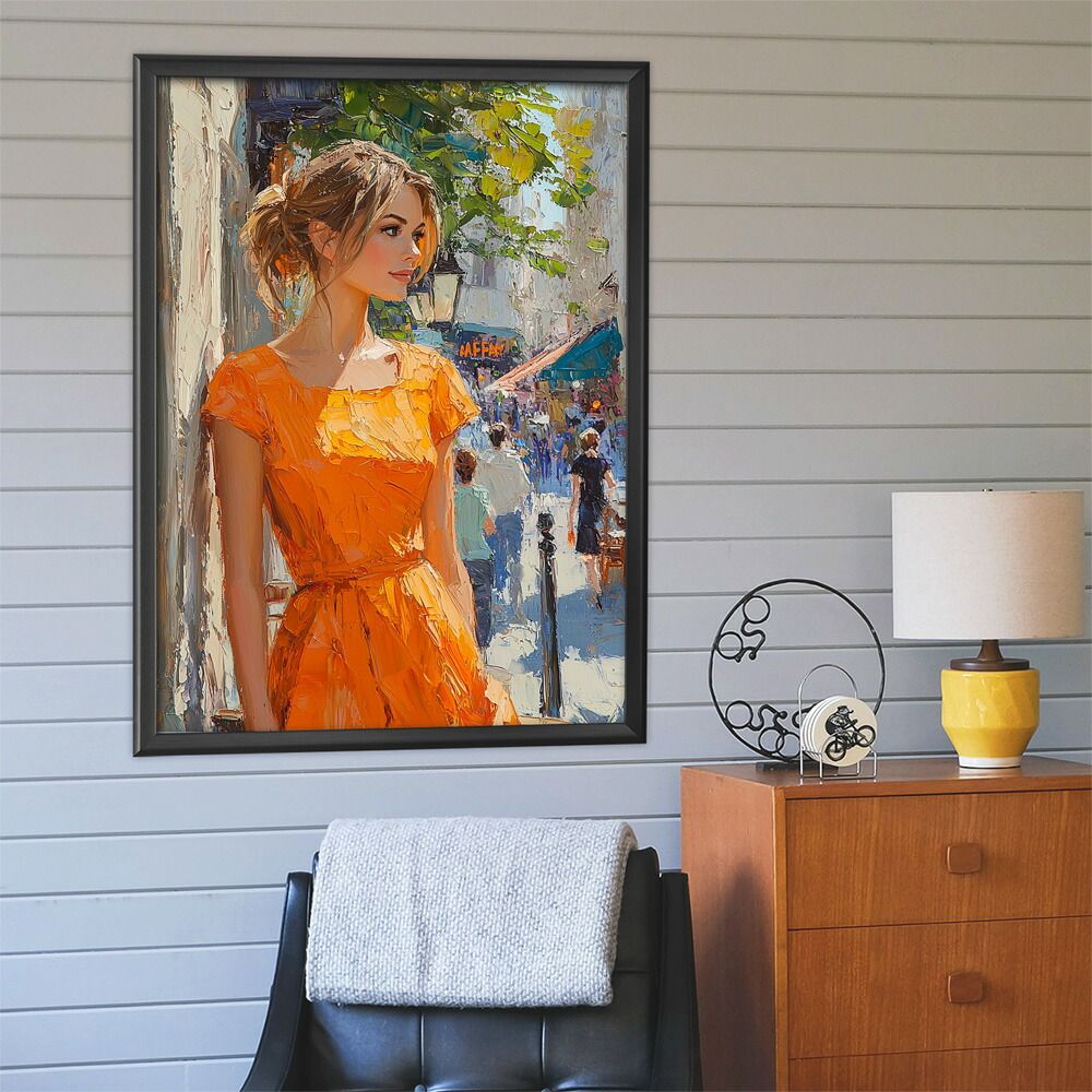 【A3サイズ(約30×42cm)】【lm-poster-2886】【フレーム付き】カフェに沈む午後 美女 絵画 画 油絵 ハンドメイド タッチ 手書き イラスト 街角 風景 カフェ ポスター イラスト