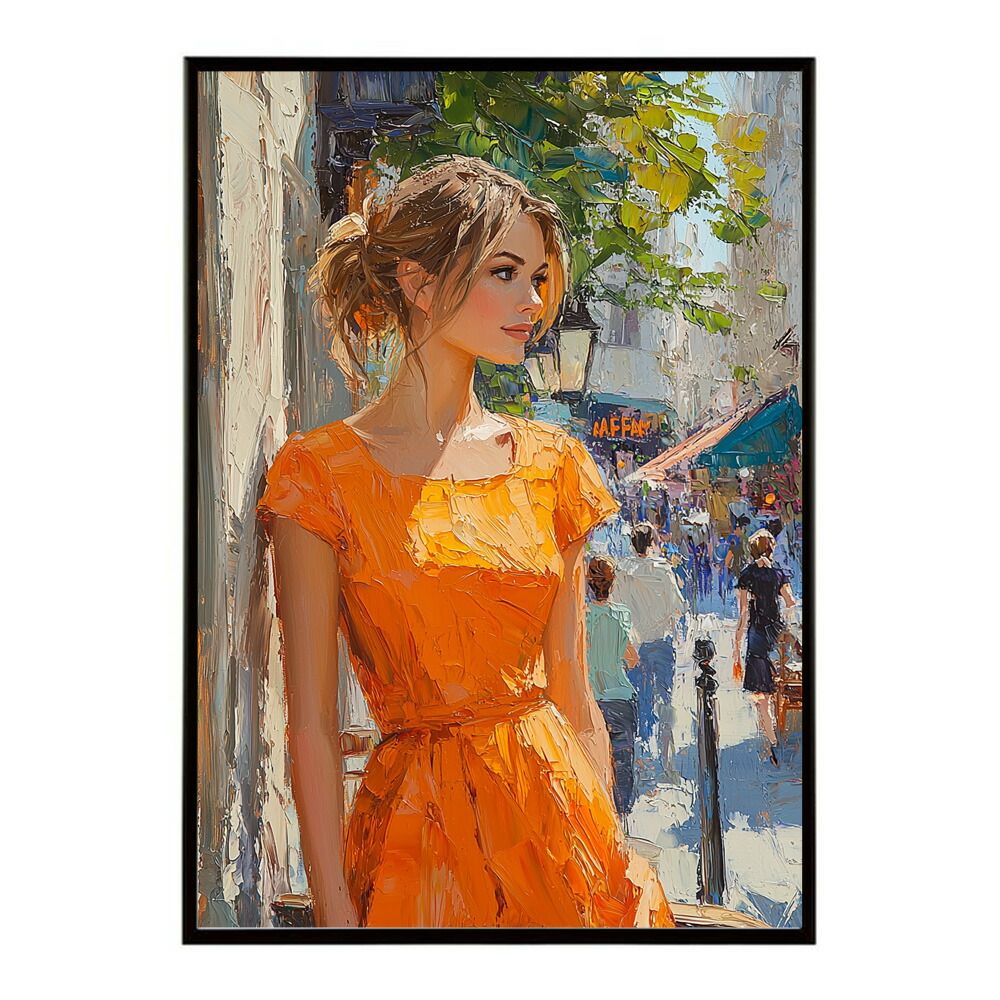 【A1サイズ(約59x84cm)】【lm-poster-2886】【フレーム付き】カフェに沈む午後 美女 絵画 画 油絵 ハンドメイド タッチ 手書き イラスト 街角 風景 カフェ ポスター イラスト