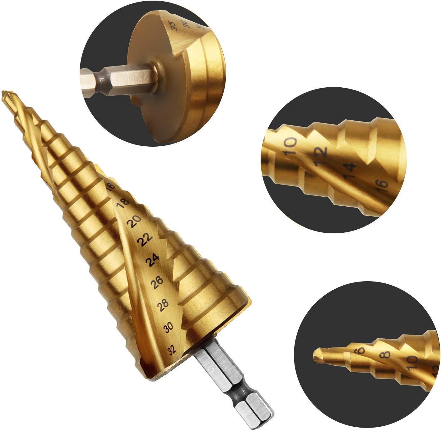 ステップドリル 六角轴 らせん状 もっと鋭い チタンコーティング スパイラル hss钢 ドリル 螺旋 ホールカッター 六角轴スパイラル 4-32mm