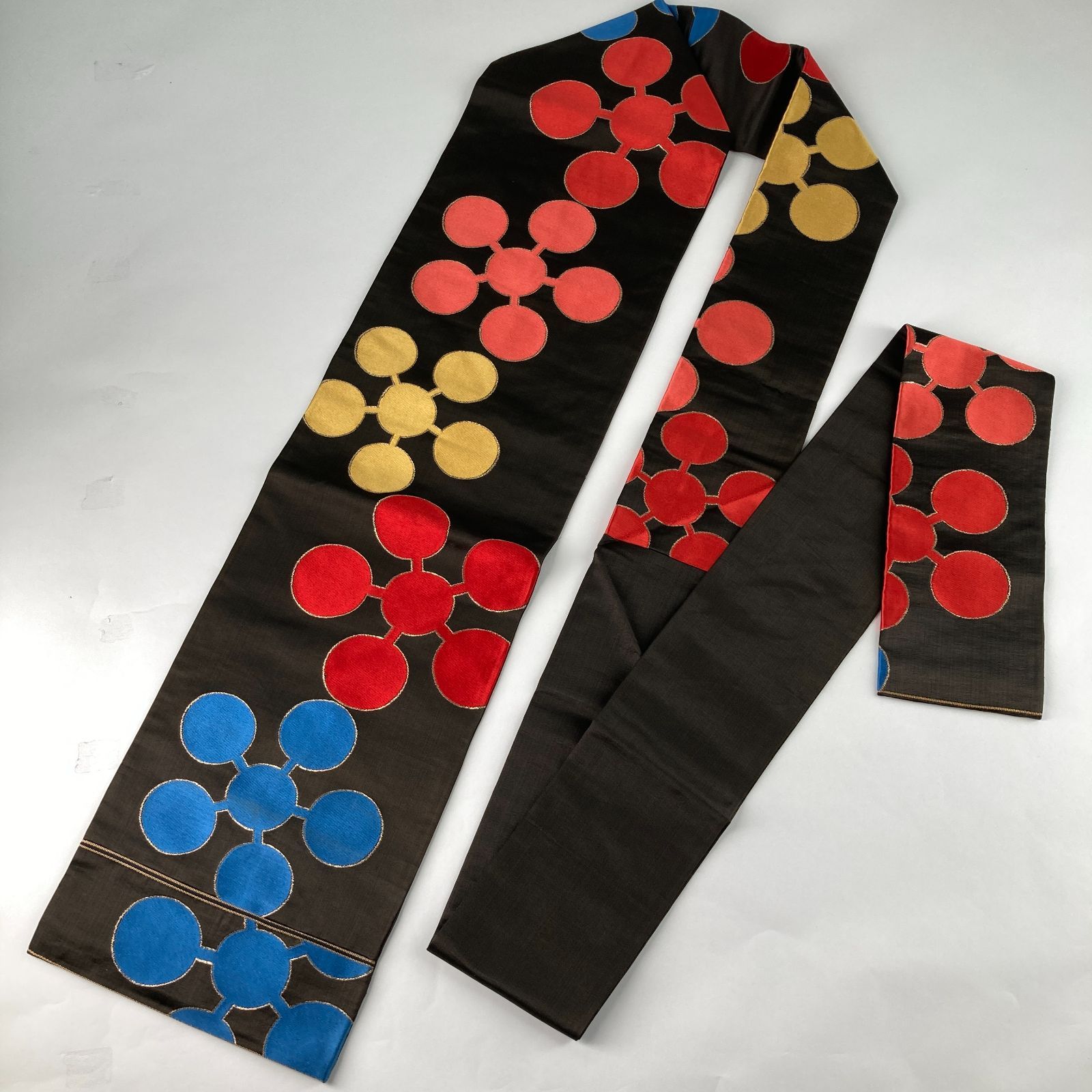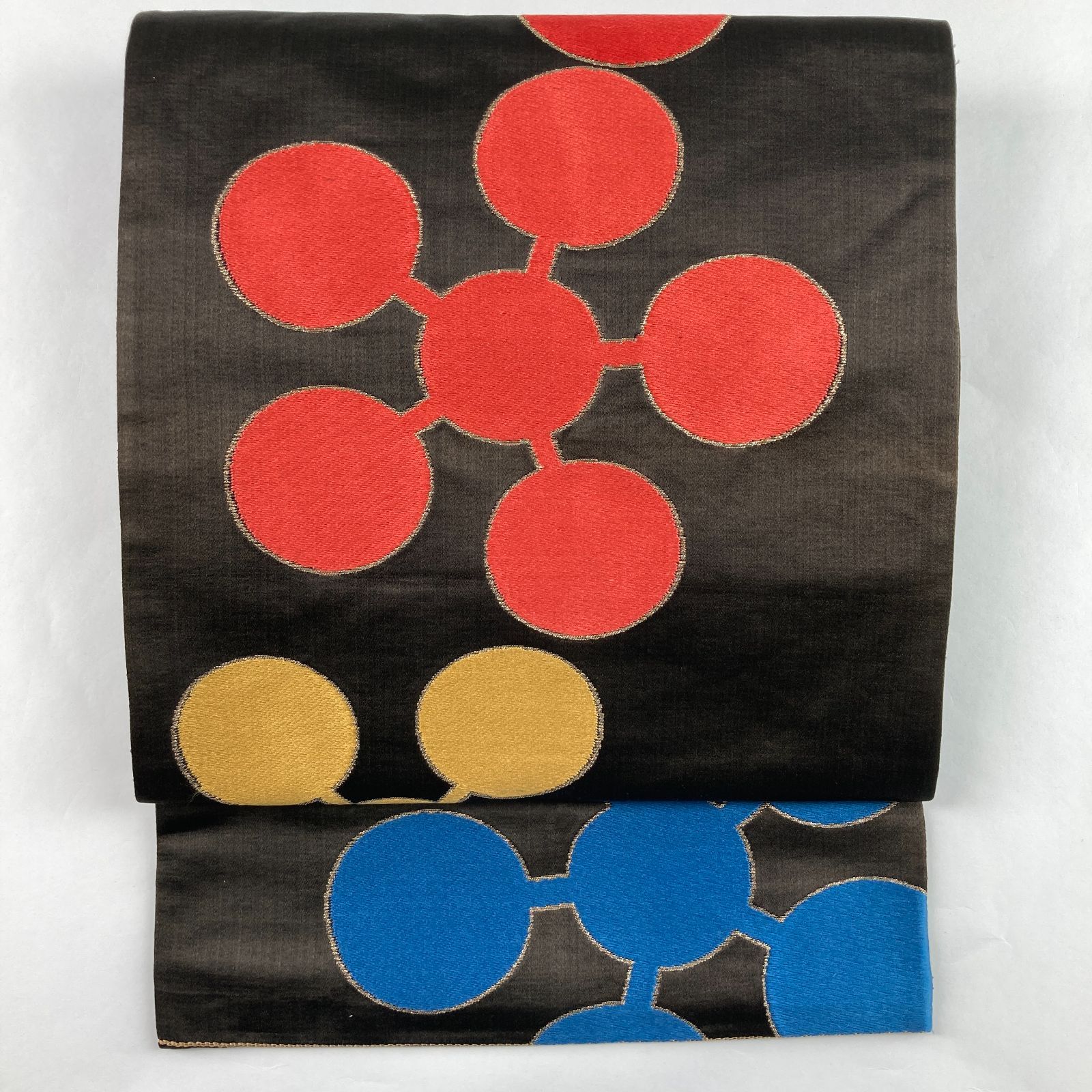 未洗い/リユース/名古屋帯/墨黒/ヴィンテージ/織り/星梅鉢/絹/名古屋仕立て/たんす屋/たんす屋オンラインストア