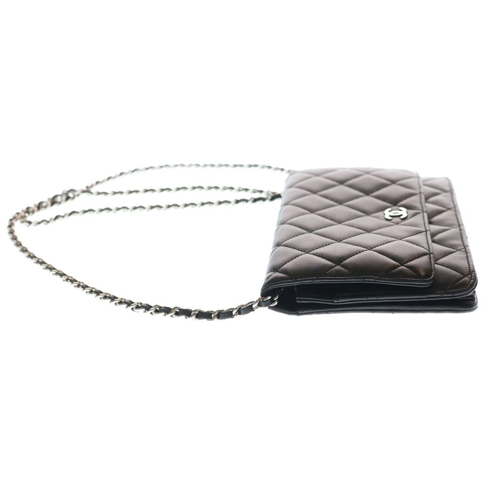 【品名】マトラッセ チェーンウォレット ショルダーウォレット チェーンバッグ ミニバッグ ブラック ラムスキン シルバー金具