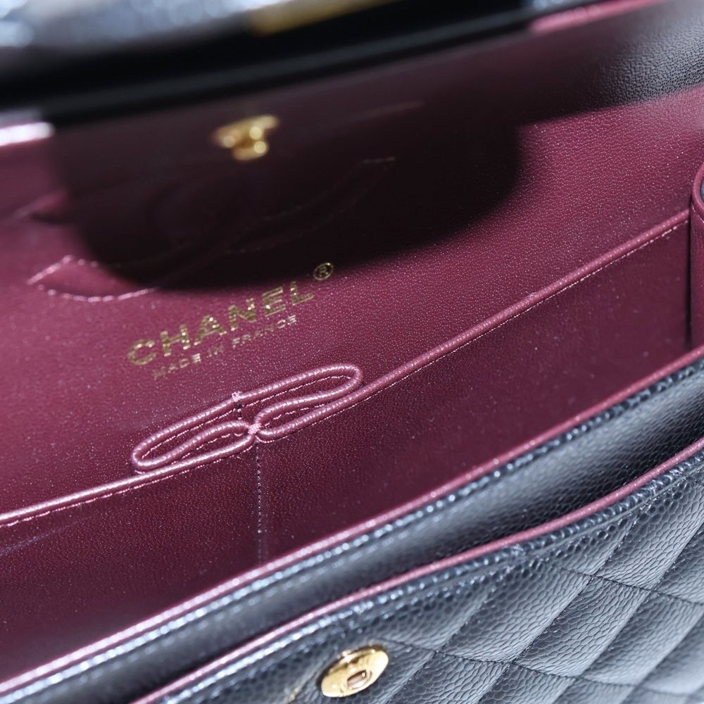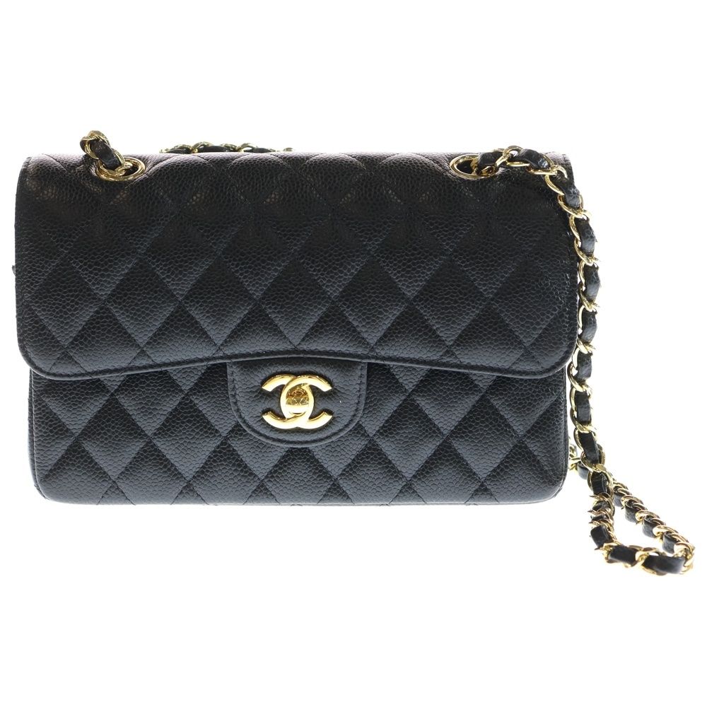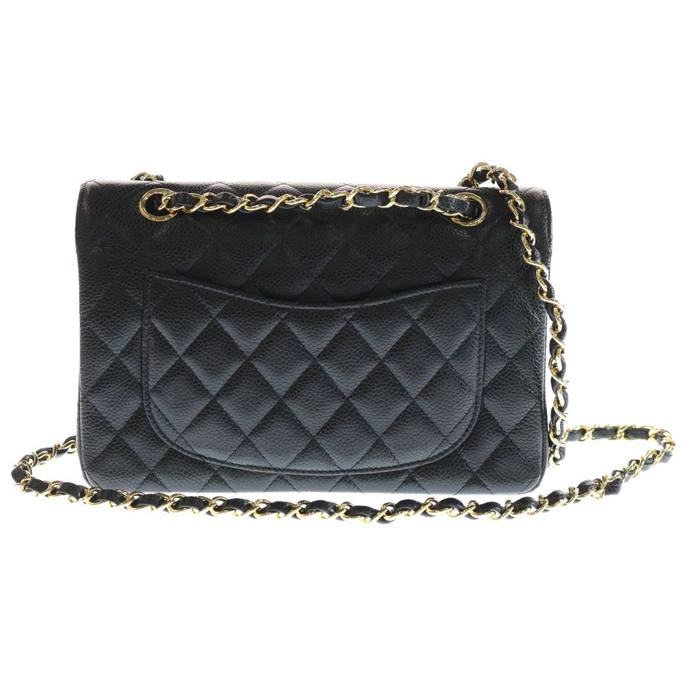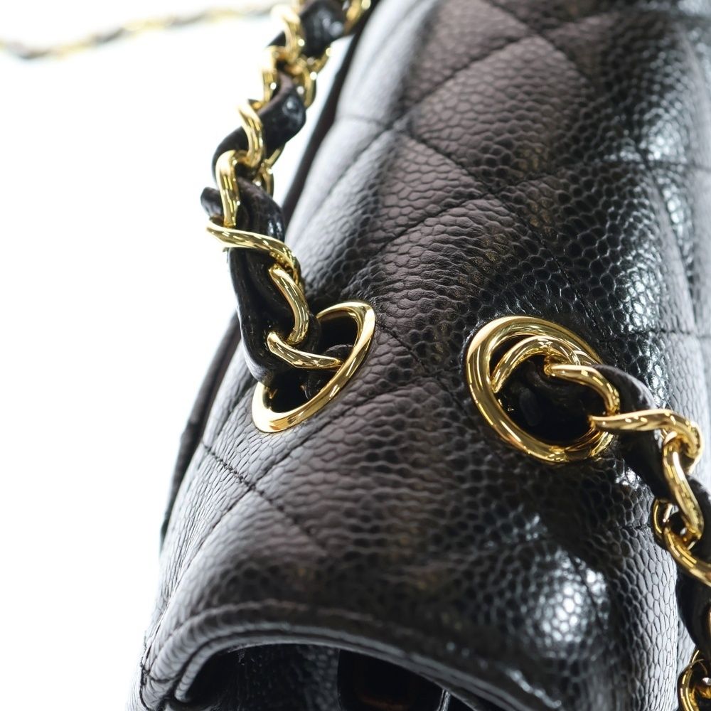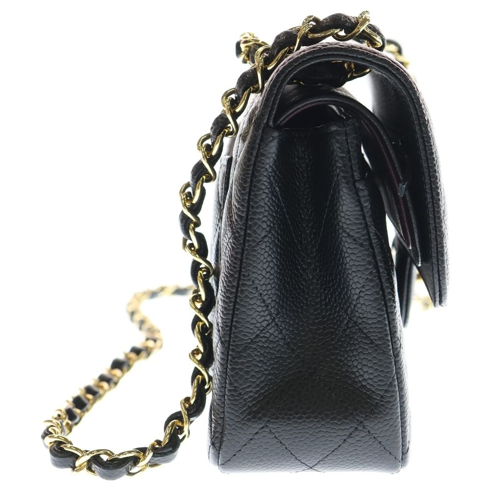 【品名】マトラッセ23 ダブルフラップ ダブルチェーン ショルダーバッグ キャビアスキン ゴールド金具 ブラック シリアルプレートタイプ
