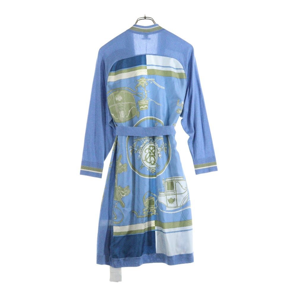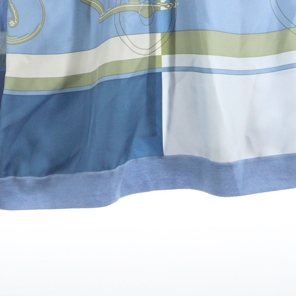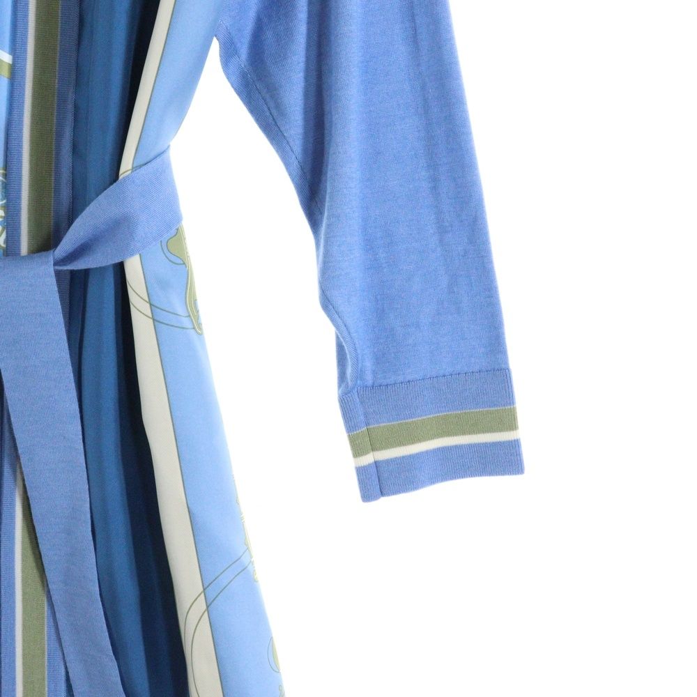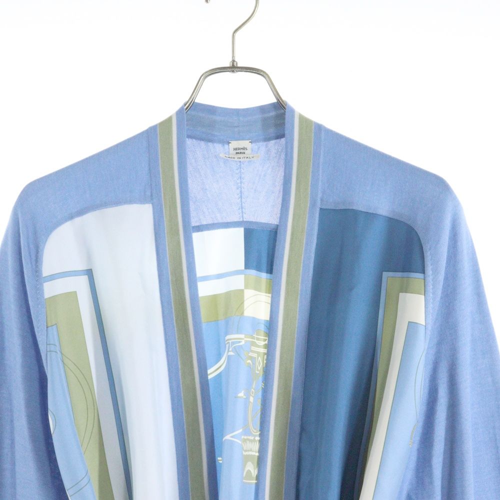 【品名】23SS ツイルレーヌ エクスリブリス 柄プリント シルクスカーフ切り替え カシミヤニット ロングカーディガン ライトブルー レディース 3E2804D7
