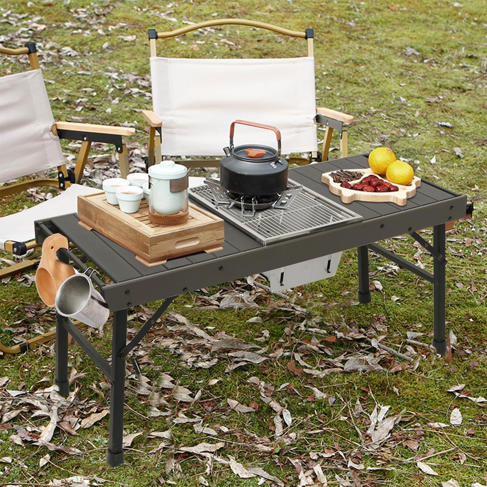 【幅広い用途】ビーチ、バーベキュー、キャンプ、公園、庭、釣り、花見など。また、室内でも使用できます。専用の収納バッグ付きで、IH調理器も対応です。持ち運びも設置も簡単です。