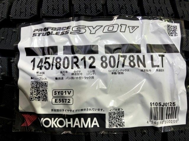 ◆ウィンター,ヨコハマ,SY01V,145/80R12,80/78N,LT,4本,10ミリ,2025年,新品未使用品,(145R12/6PR,互換サイズ)