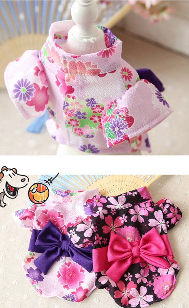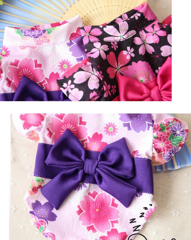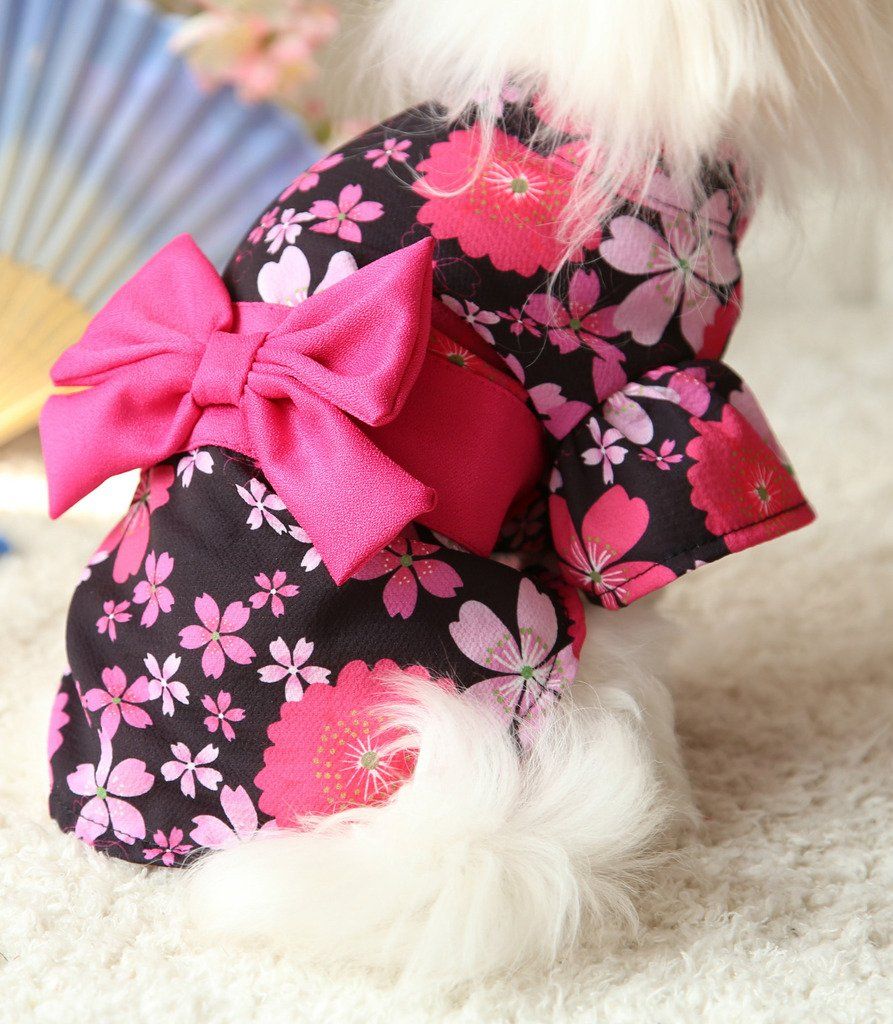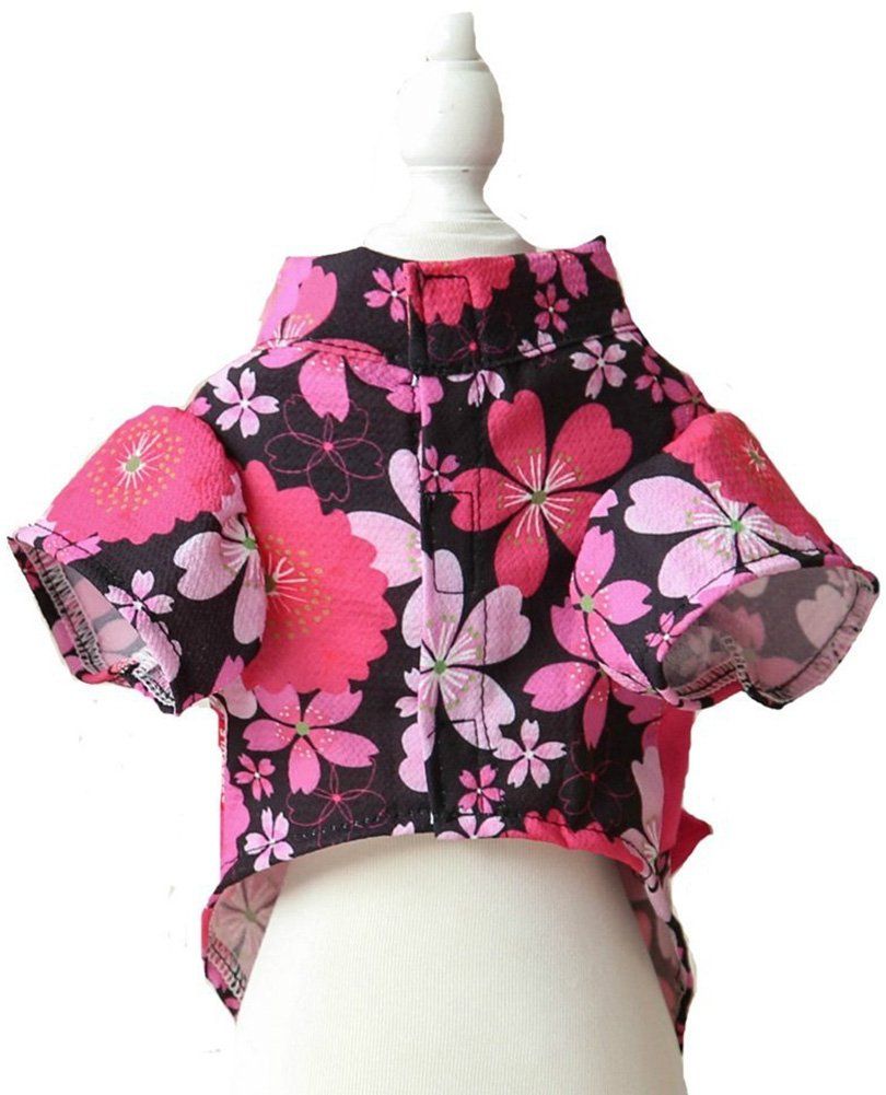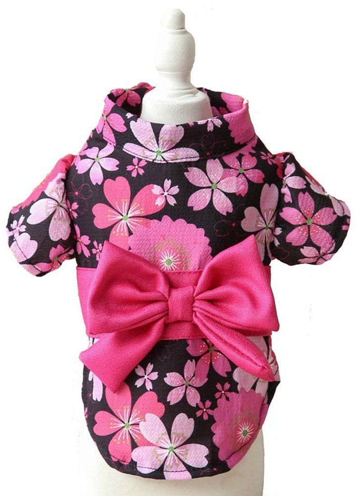 MaruPet(マルペット)犬服 春物 和風 浴衣 桜 蝶結び 菊花 着物 両足 和服 小型犬 お祭り お正月 お祝い 年末年 パラダイス 結婚式 記念撮影 誕生日ブラック XS