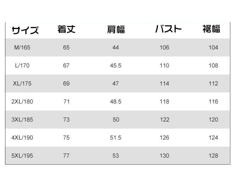サイズ:M、L、XL、2XL、3XL、4XL、5XL