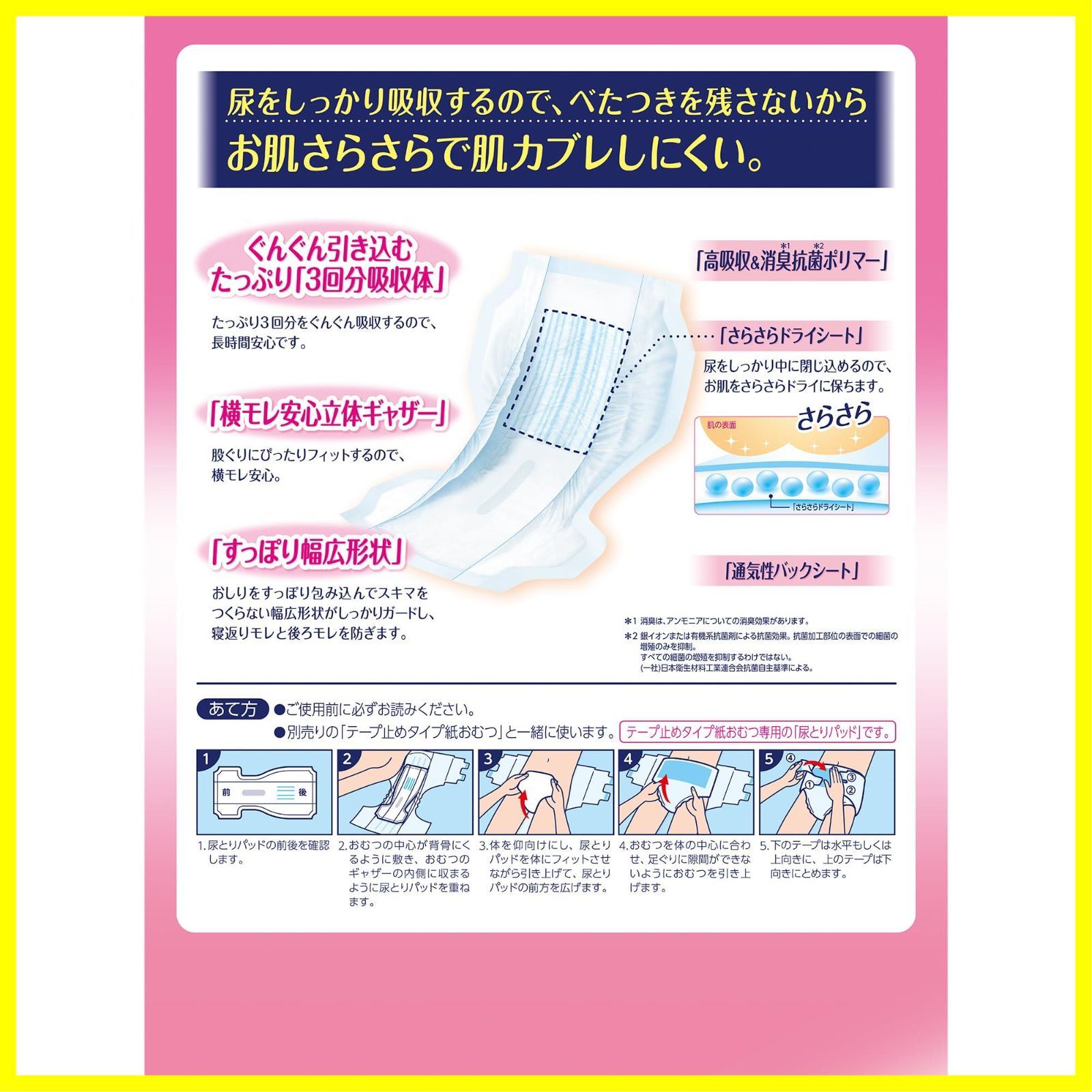 ●お肌をドライに保つさらさらドライシートの尿とりパッドです。