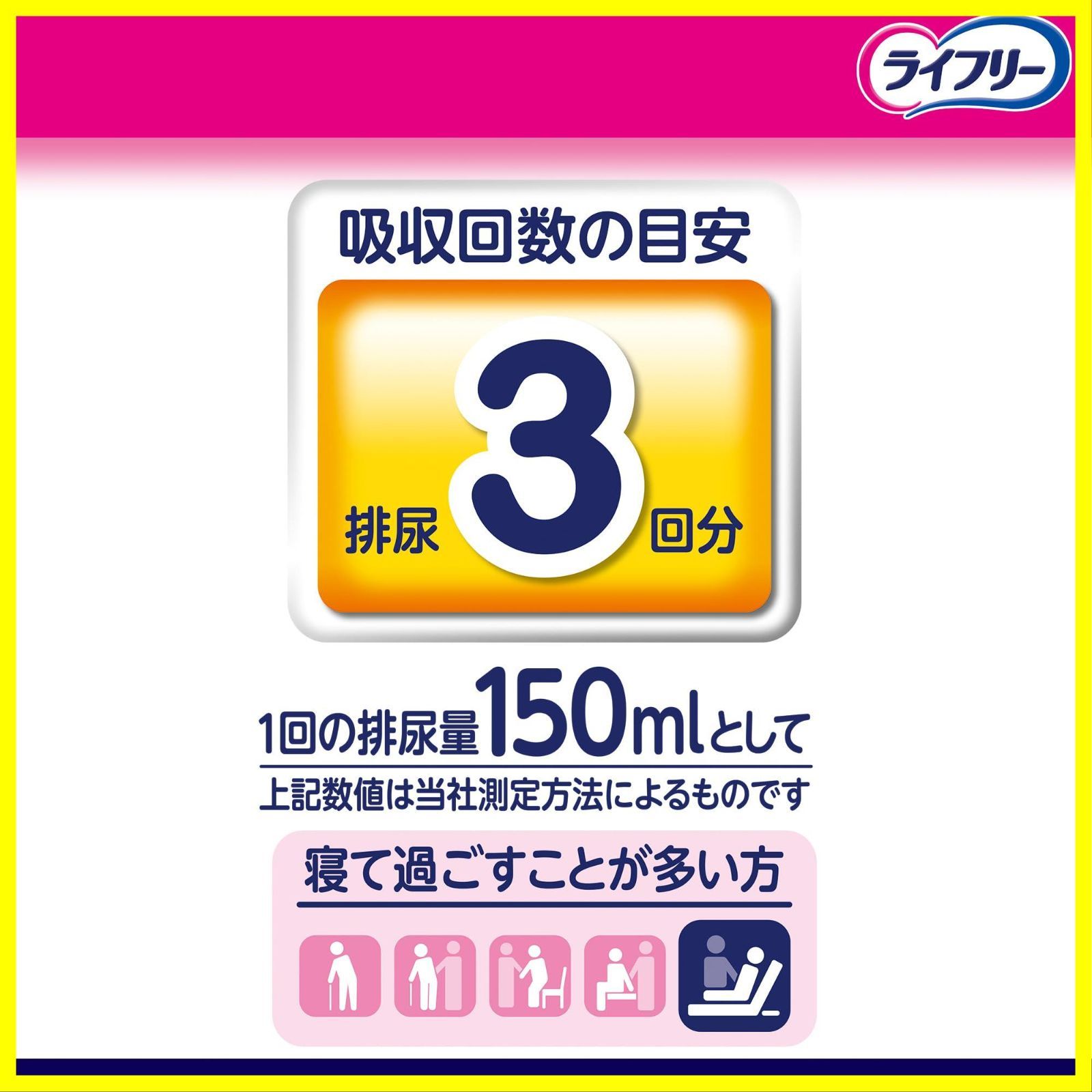 ●吸収回数の目安:排尿3回分1回の排尿量150mlとして)