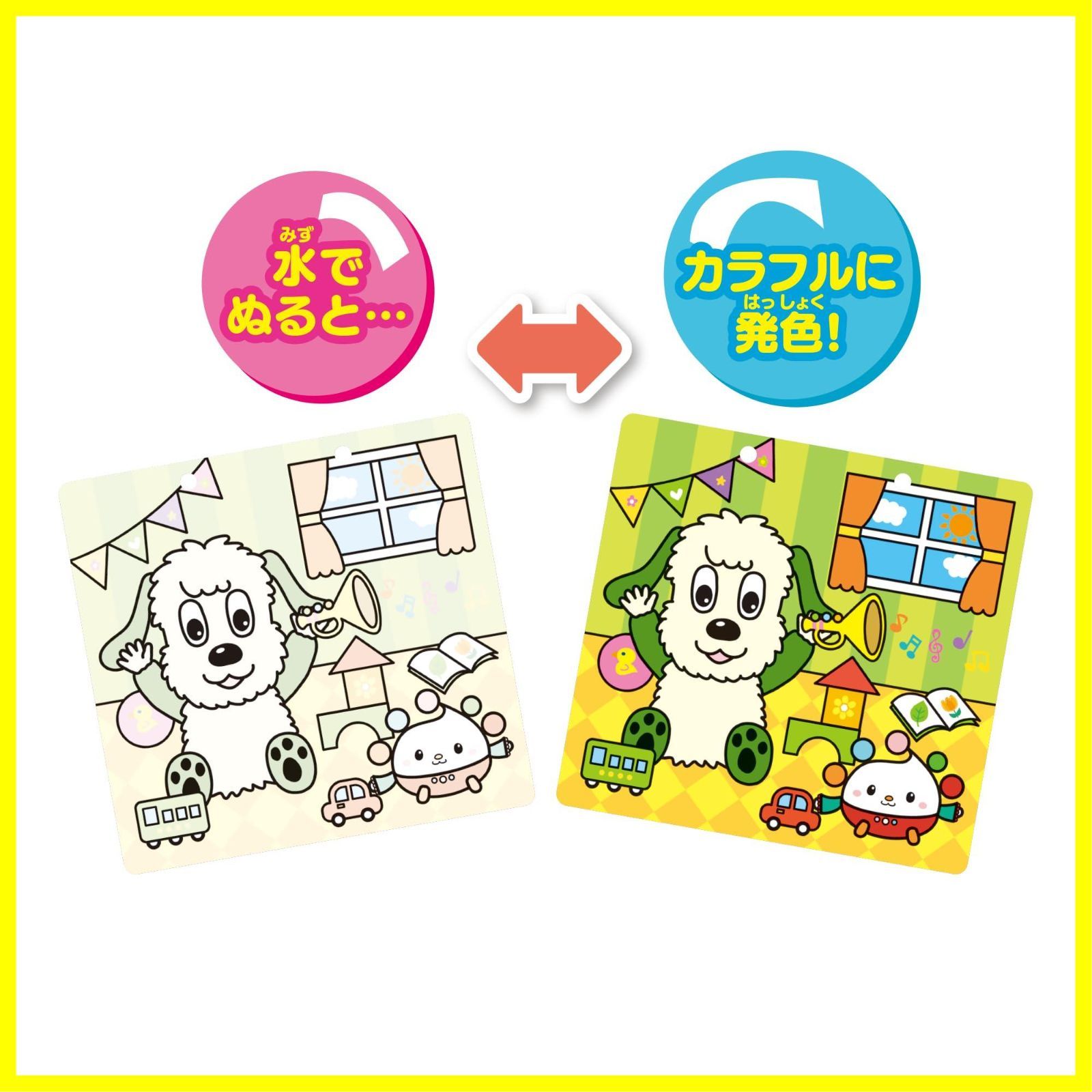 お水だけでカラフルに発色し、汚さずきれいにぬれます。乾くと消えて何回もぬれる、ぬりえ4枚入り。水に濡れても破れない丈夫な合成紙使用。ペンの持ち方が身につく専用ペン。おでかけにもぴったりペンホルダーつき。